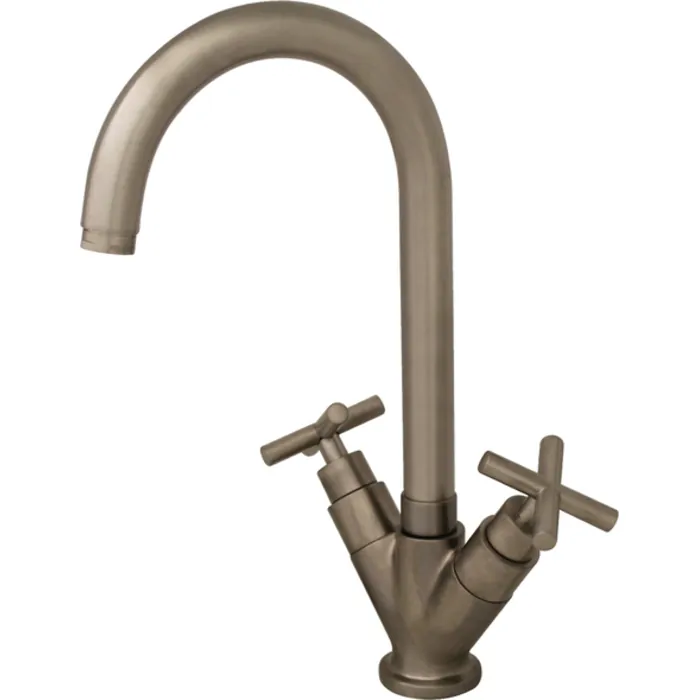 Whitehaus Luxe Single Hole/dual Handle Entertainment/prep Faucet With High Tubular Swivel Spout In Brushed Nickel WHLX79572-BN