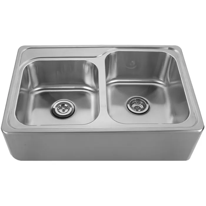Brushed Stainless Steel double bowl drop-in sink with seamless customized front apron