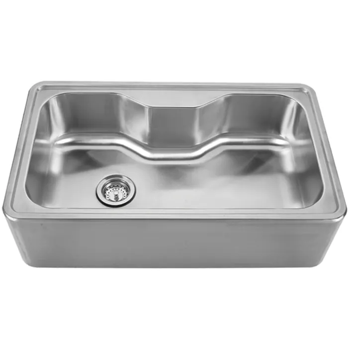 Brushed Stainless Steel single bowl drop-in sink with a seamless customized front apron