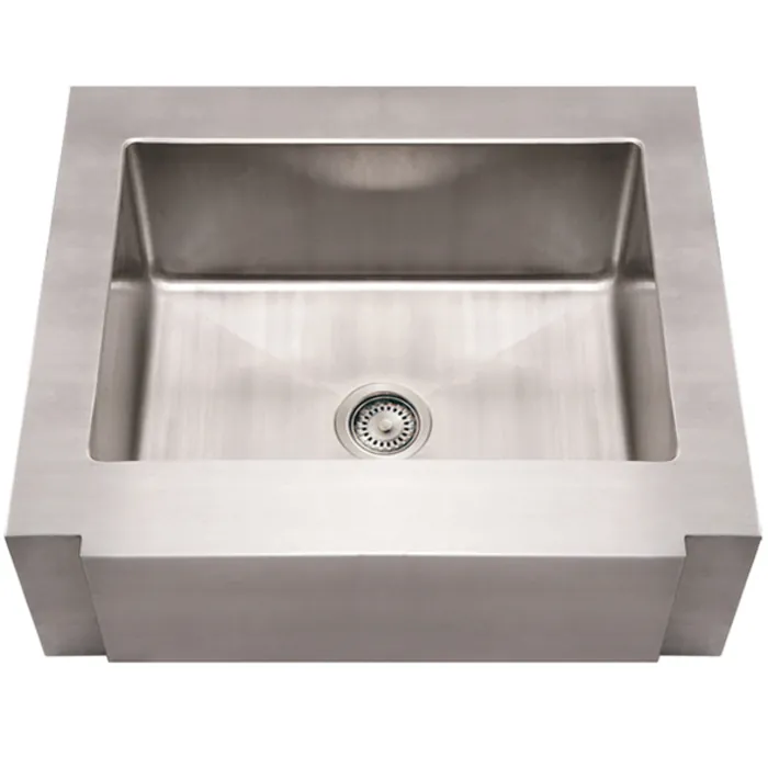 Brushed Stainless Steel commercial single bowl sink with a decorative notched front apron