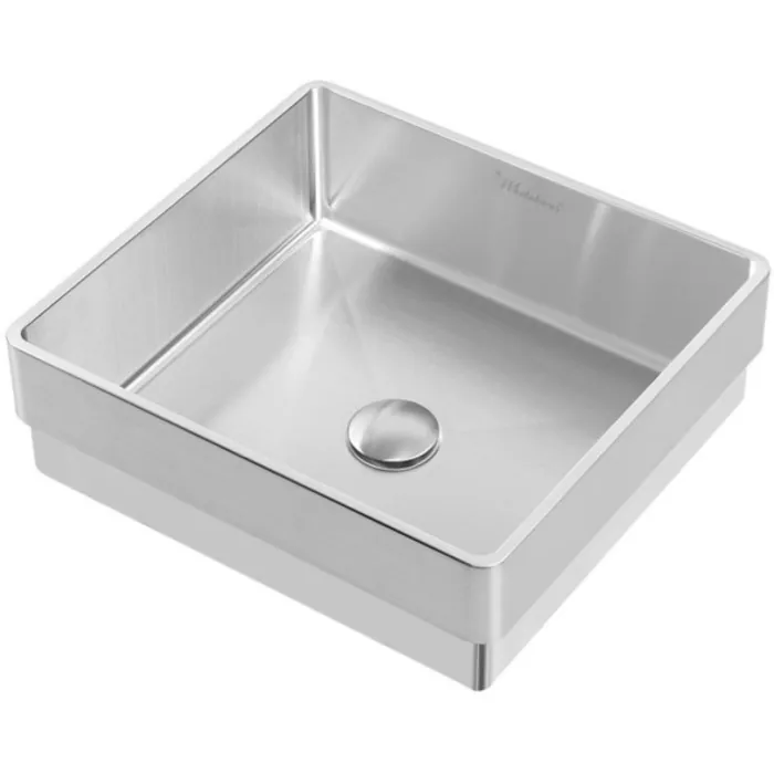Whitehaus WHNPL1577-BSS Noah Plus 10 Gauge Frame, Squared Semi-recessed Basin Set With Center Drain