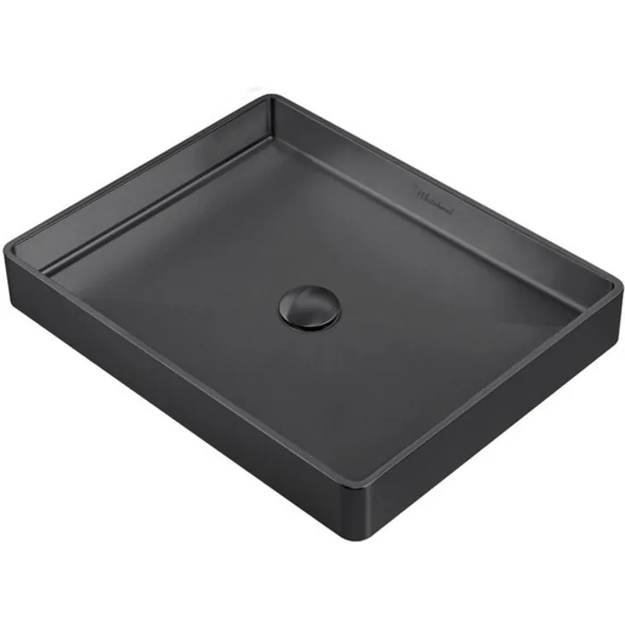 Whitehaus WHNPL1578-MBLK Noah Plus 10 Gauge Frame, Rectangular Matte Textured Above Mount Basin Set With Center Drain
