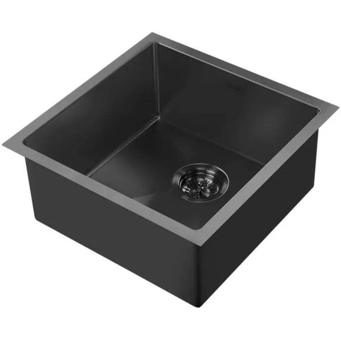 Whitehaus WHNPL1818-MBLK Noah Plus 16 Gauge Single Bowl Matte Textured Dual-mount Sink Set