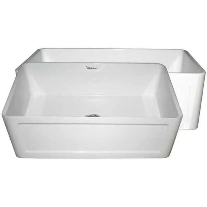 Whitehaus WHPLCON2719-WHITE Farmhaus Fireclay Reversible 27 inch Sink With A Plain Front Apron On One Side And A Concave Front Apron On The Other