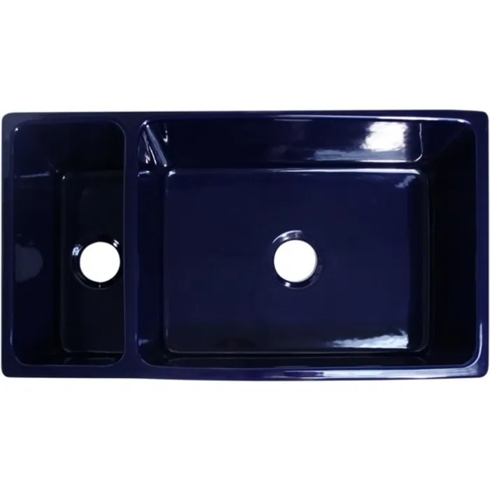 Whitehaus Collection is an industry leader, offering the widest selection of fireclay sinks in the market. Every sink is handmade from natural clay, molded, and then baked into an elegant, smooth and glossy finish. Proven to be durable and resistant to extreme temperatures fireclay sinks are visually appealing and timeless in design. The 36" Large Quatro Alcove reversible double bowl sink with a small bowl and a large bowl that has a decorative 2 1/2" lip on both sides is featured here in your choice of White, Biscuit, Black or Sapphire Blue.