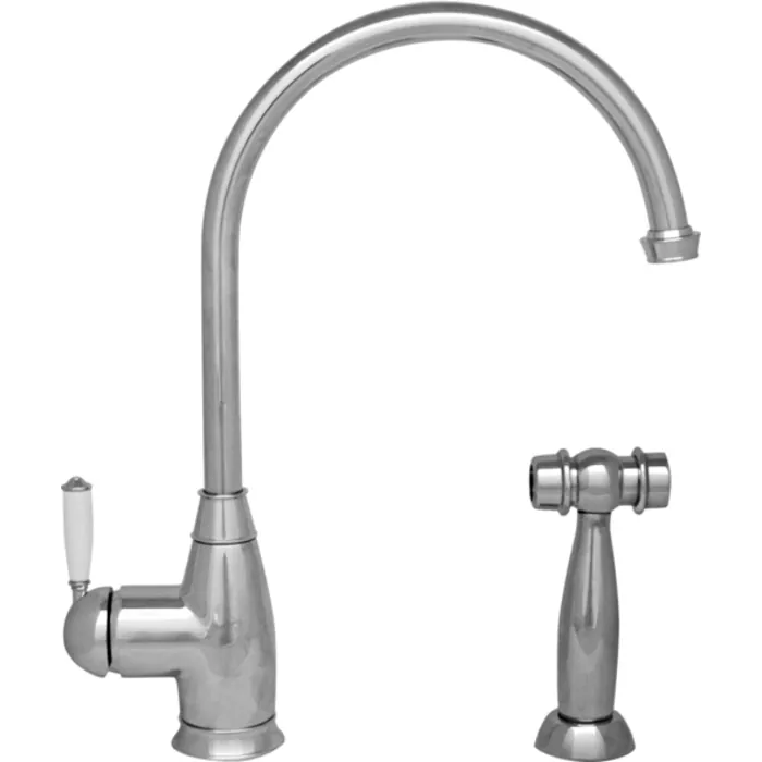 Whitehaus WHQNP-34682-C Queenhaus Single Lever Faucet With A Long Gooseneck Spout, Porcelain Single Lever Handle And Solid Side Spray