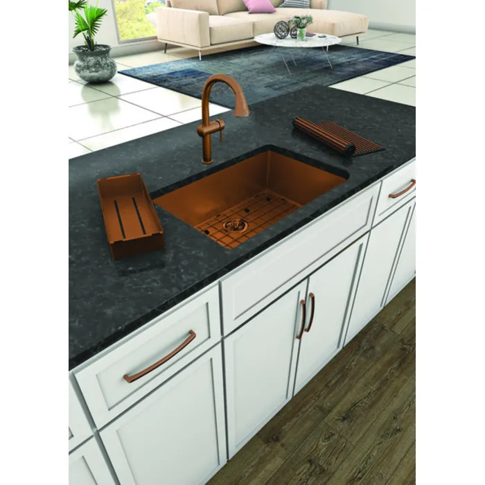 Whitehaus Waterhaus Lead Free Solid Stainless Steel Single-hole Faucet With Gooseneck Swivel Spout, Pull Down Spray Head And Solid Lever Handle In Copper WHS1971-SK-CO