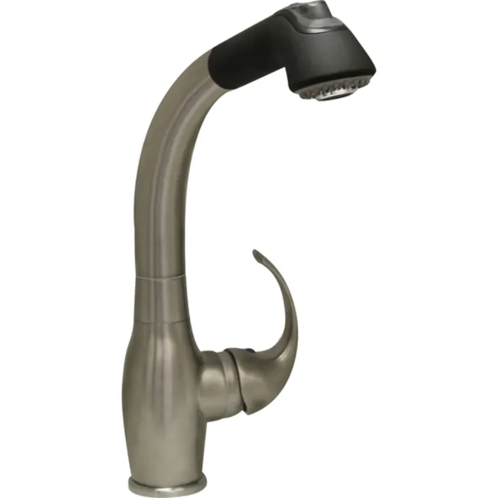 Whitehaus Collection's Metrohaus Kitchen Faucets are built to withstand a tough environment. Enhance your decor with the commanding presence of this single hole kitchen faucet with matching pull-out spray head and curved lever handle in your choice of Brushed Nickel-PVD, Brushed Nickel PVD/Black, and Polished Chrome.