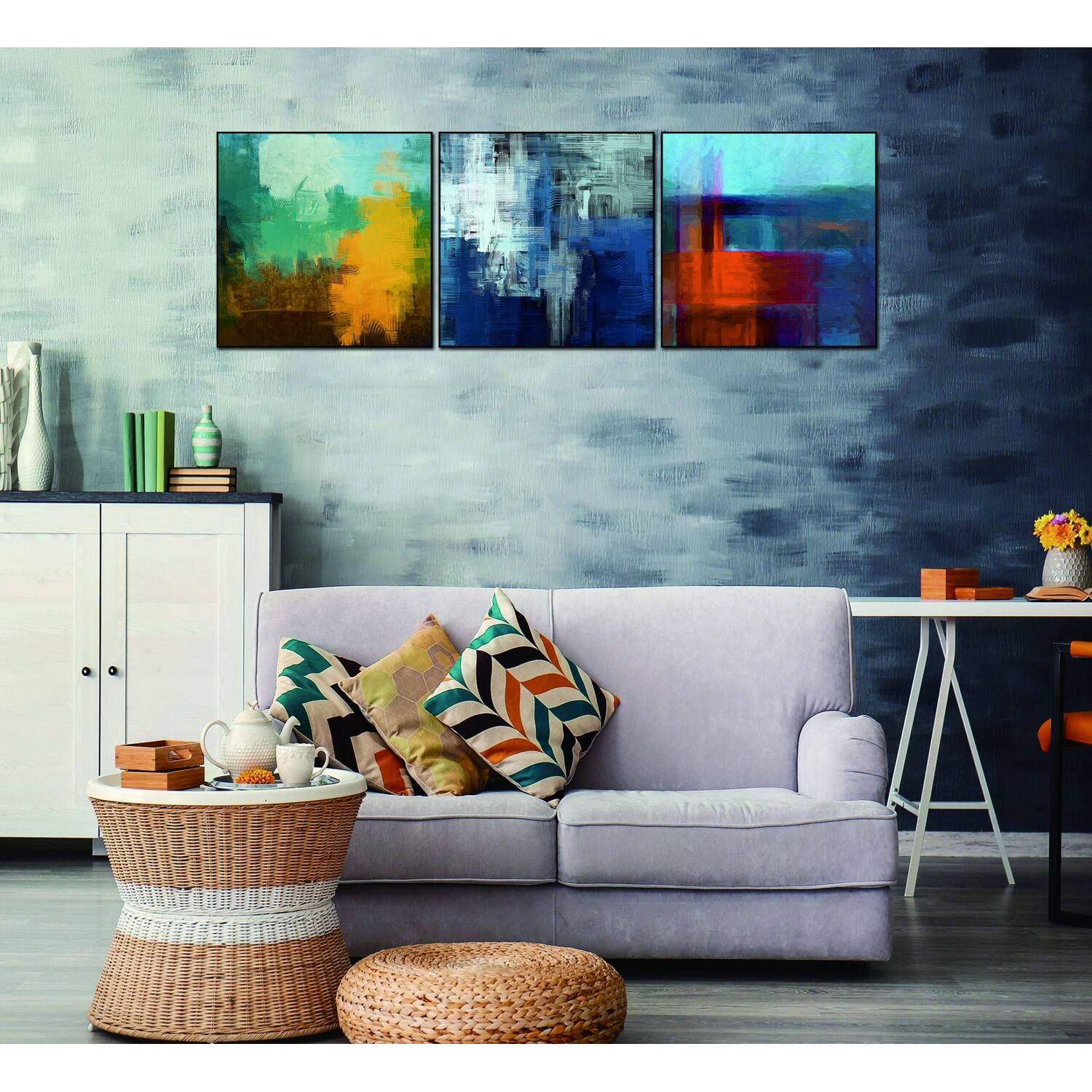 WhiteLine Terra 3-Piece 28 inchx28 inch (each) Canvas Wall Art, Black PS Frame, 0696576755453, AW1849