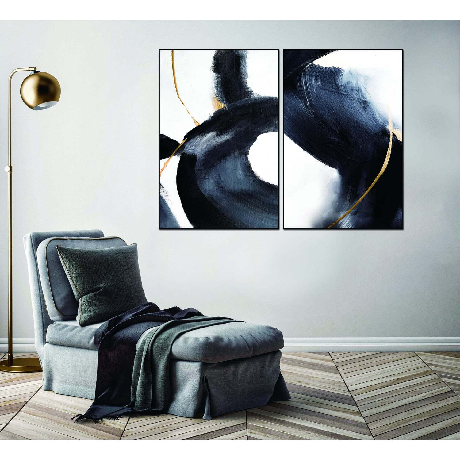 WhiteLine Nero 2-Piece 40"x60" (each) Canvas Wall Art, Black PS Frame, 0696576755569, AW1860