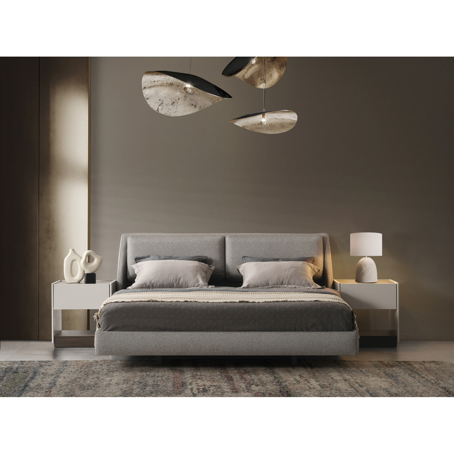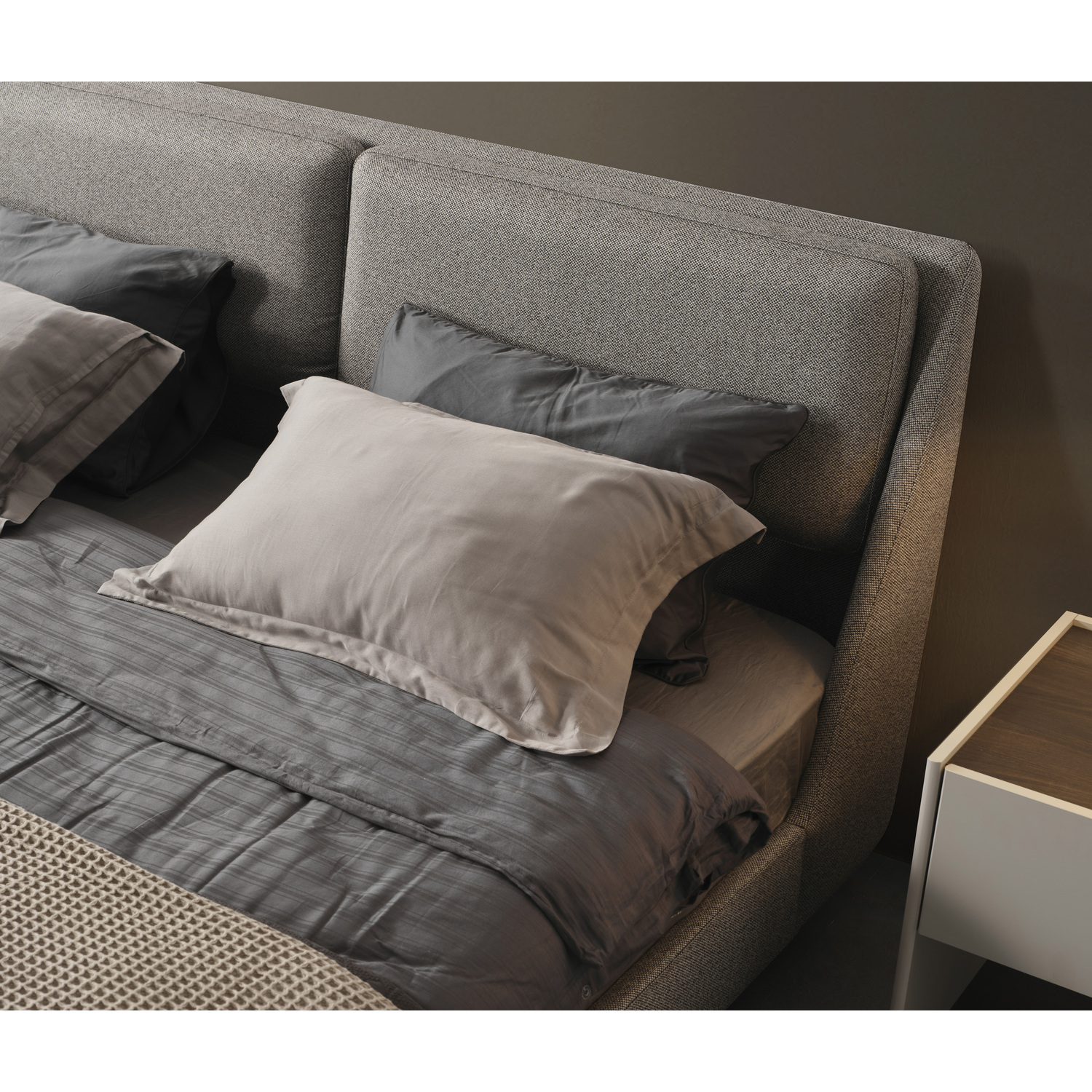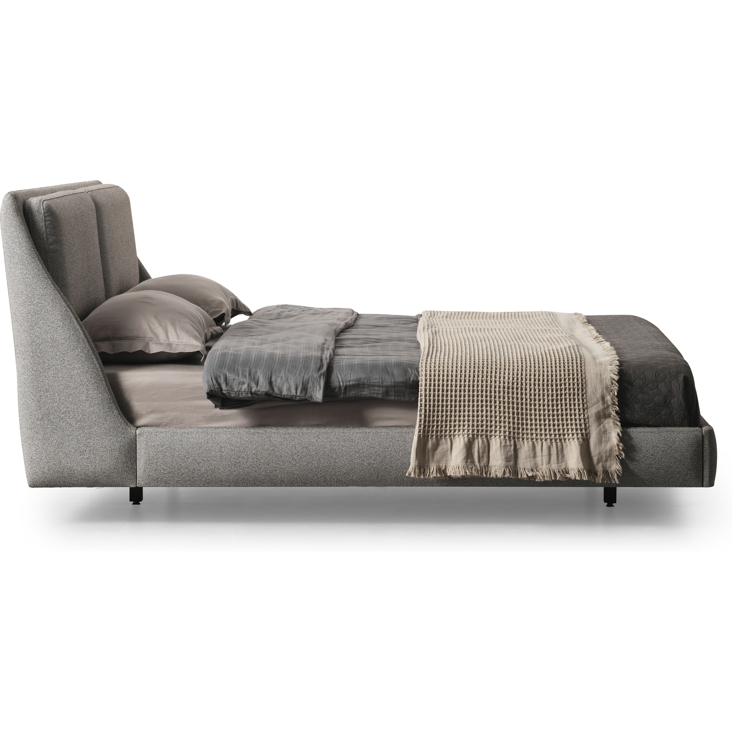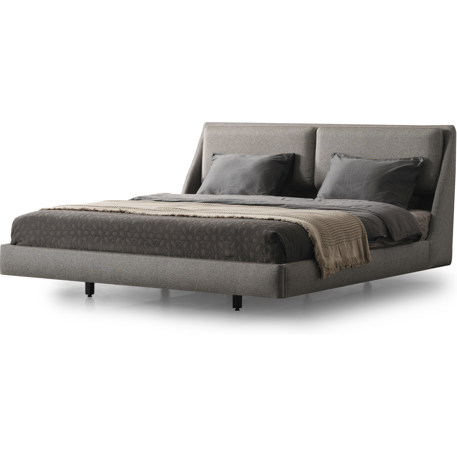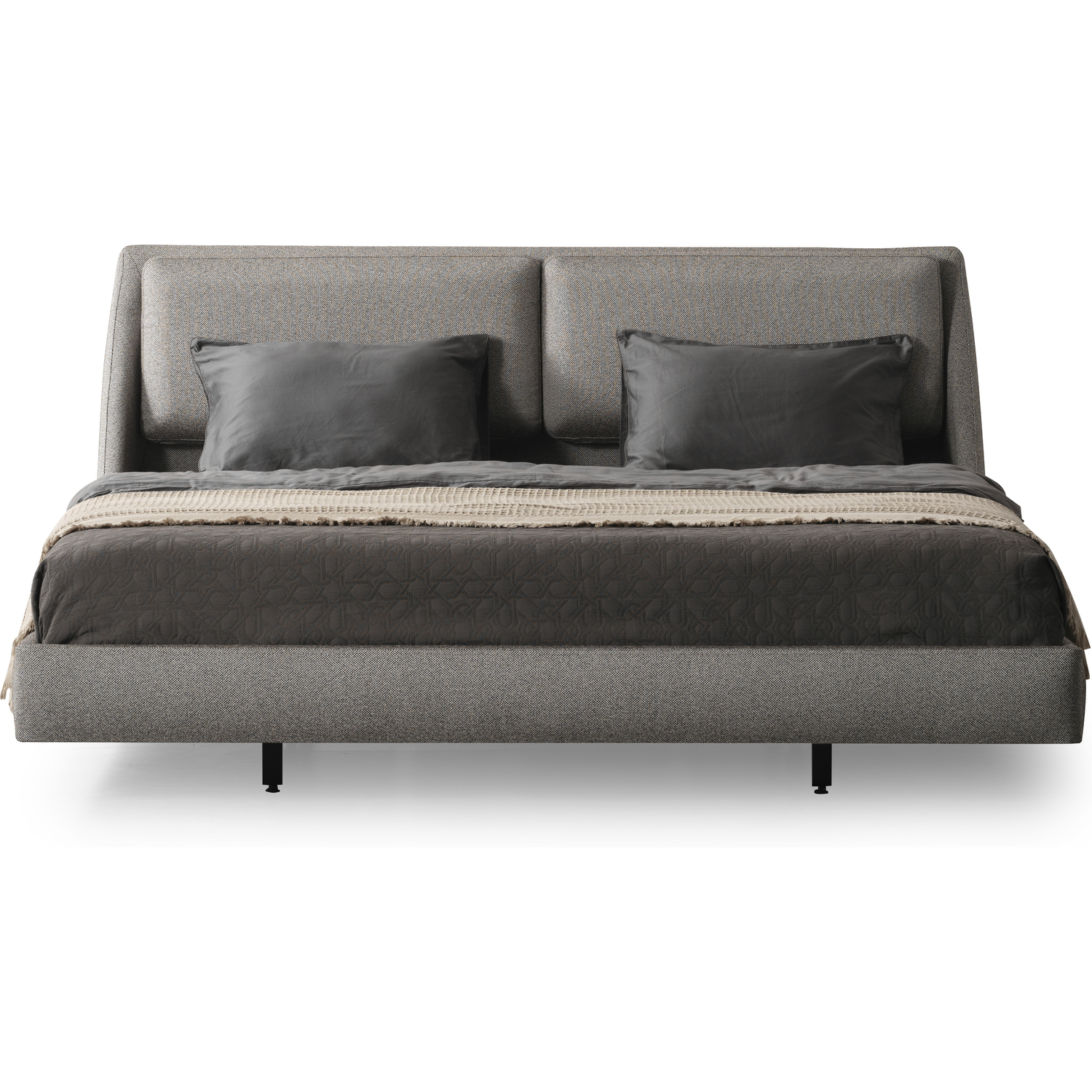 WhiteLine Raphael Bed King, Fully Upholstered in Light Grey Linen Fabric TCA-2298410-F-LGRY , Split Headboard Cushions Design, and black metal base, 0696576761195, BK2055F-LGRY