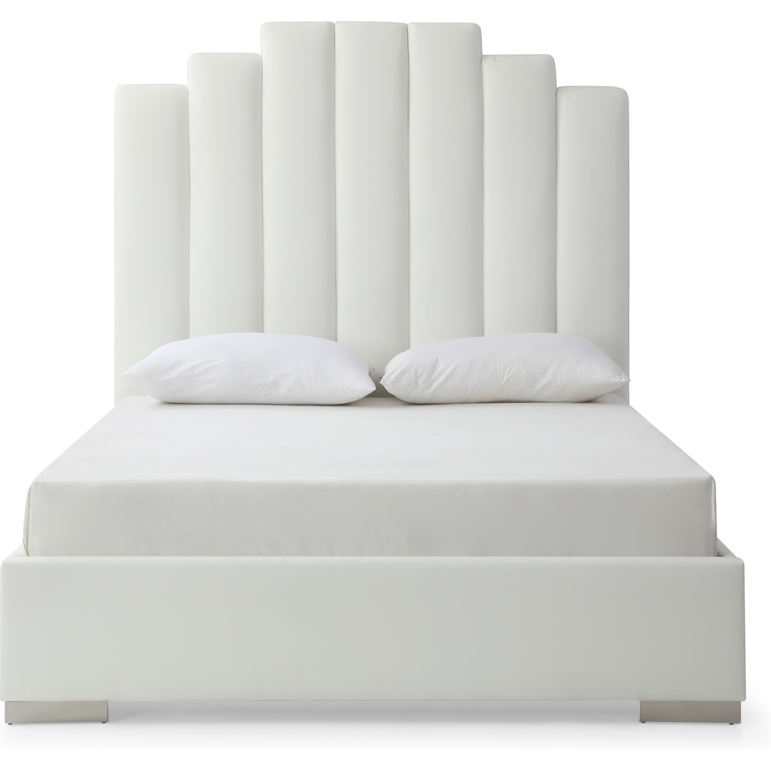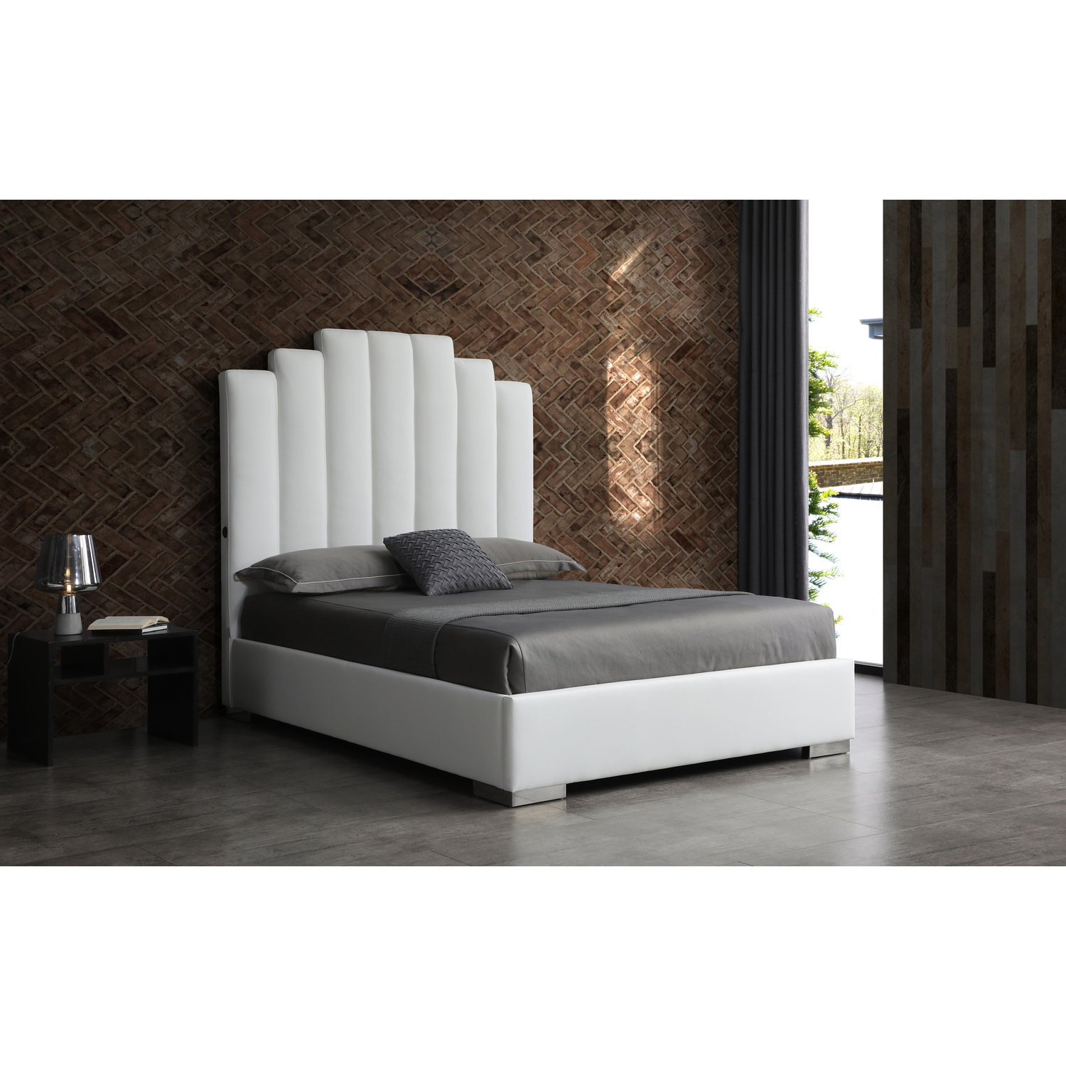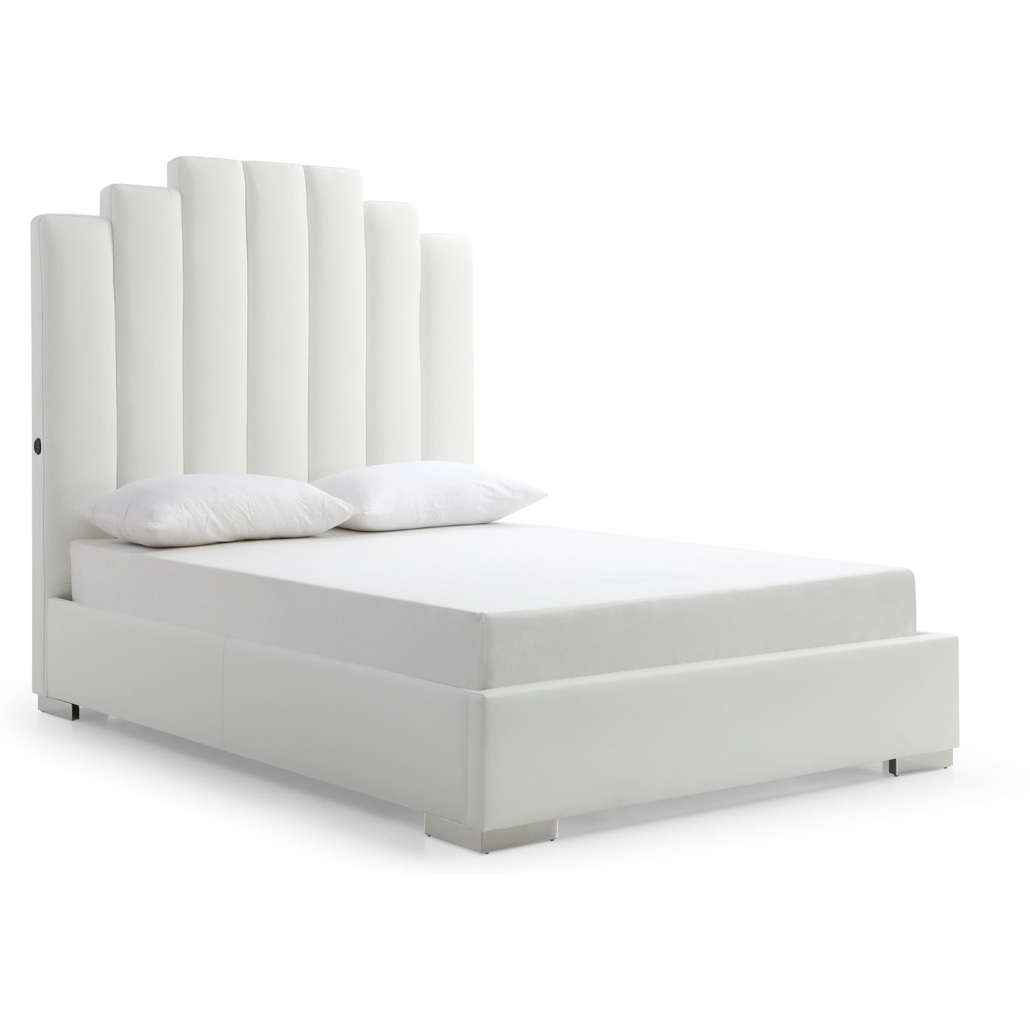 Jordan Queen Bed , Fully Upholstered White Faux Leather, Double USB in Headboard