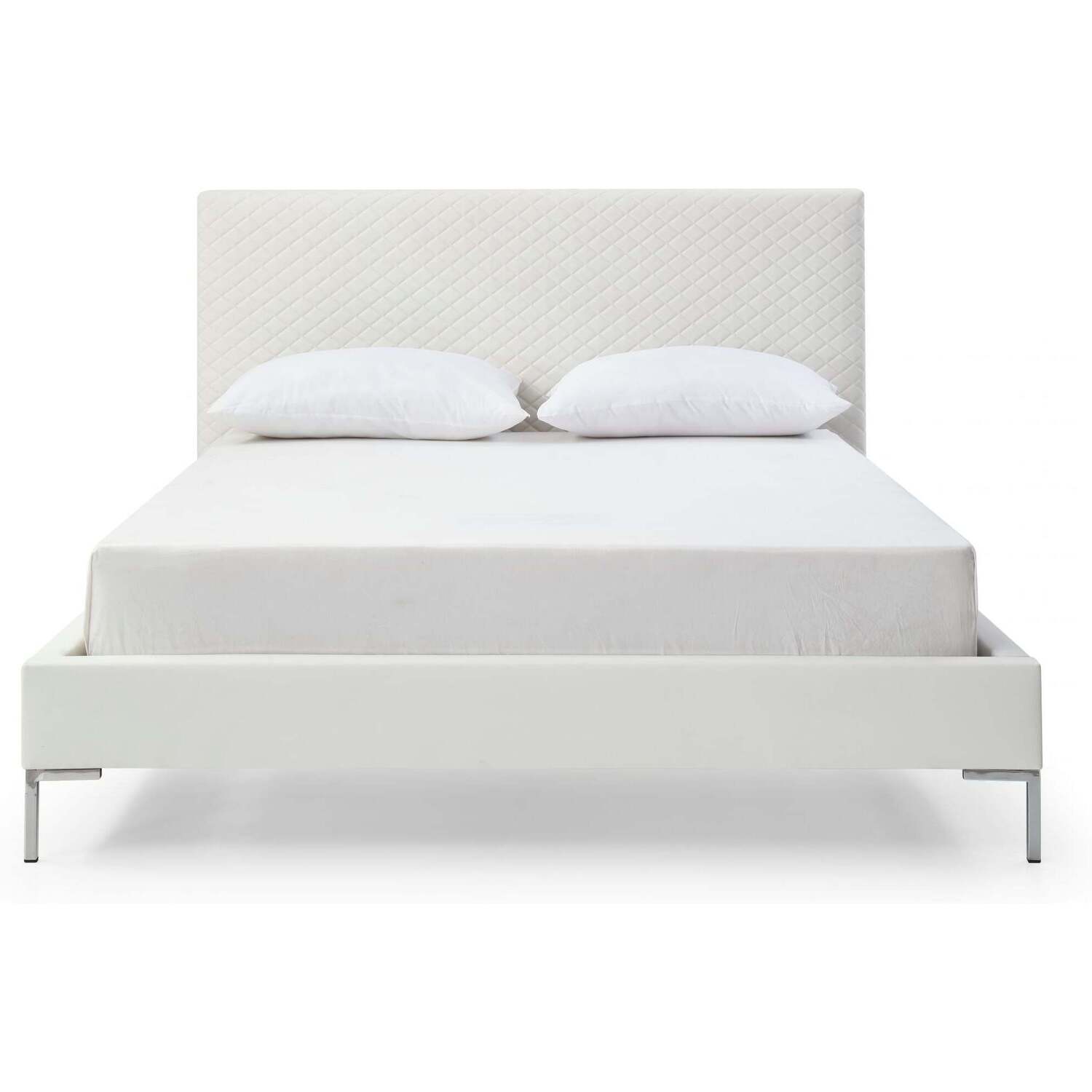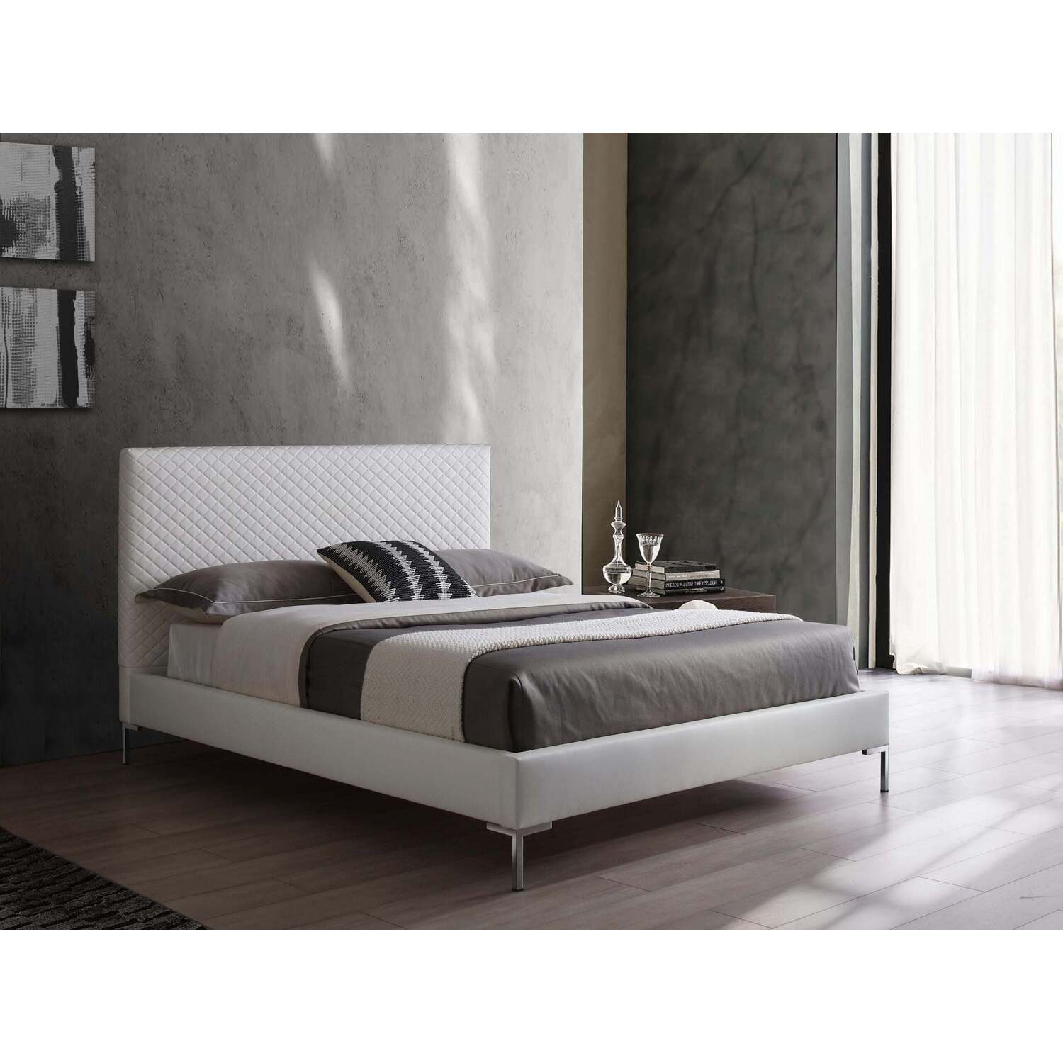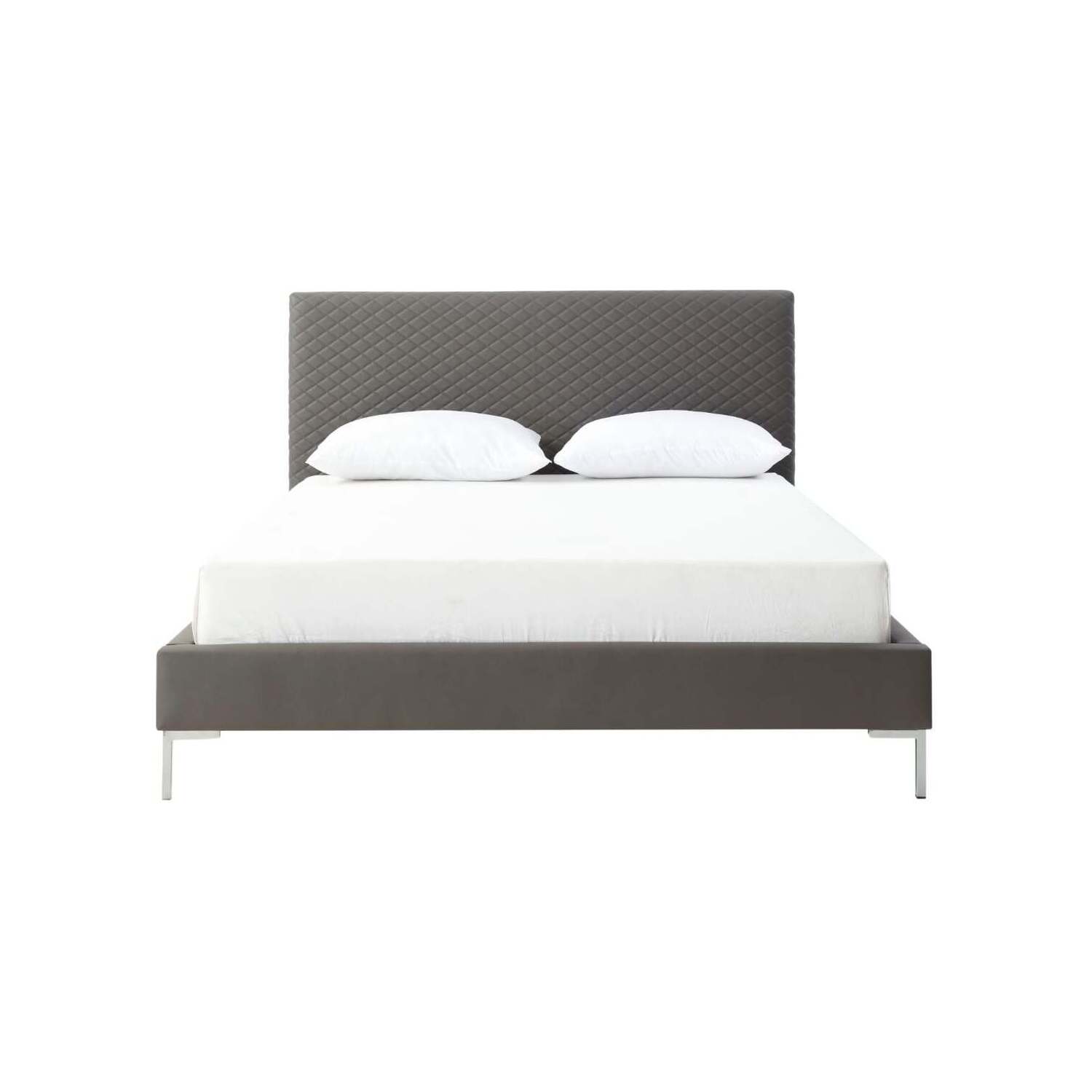 Whiteline Imports Liz Queen Bed , Fully Upholstered Dark Gray faux leather, Chrome Legs BQ1689P-DGRY