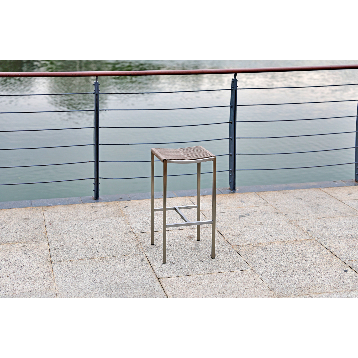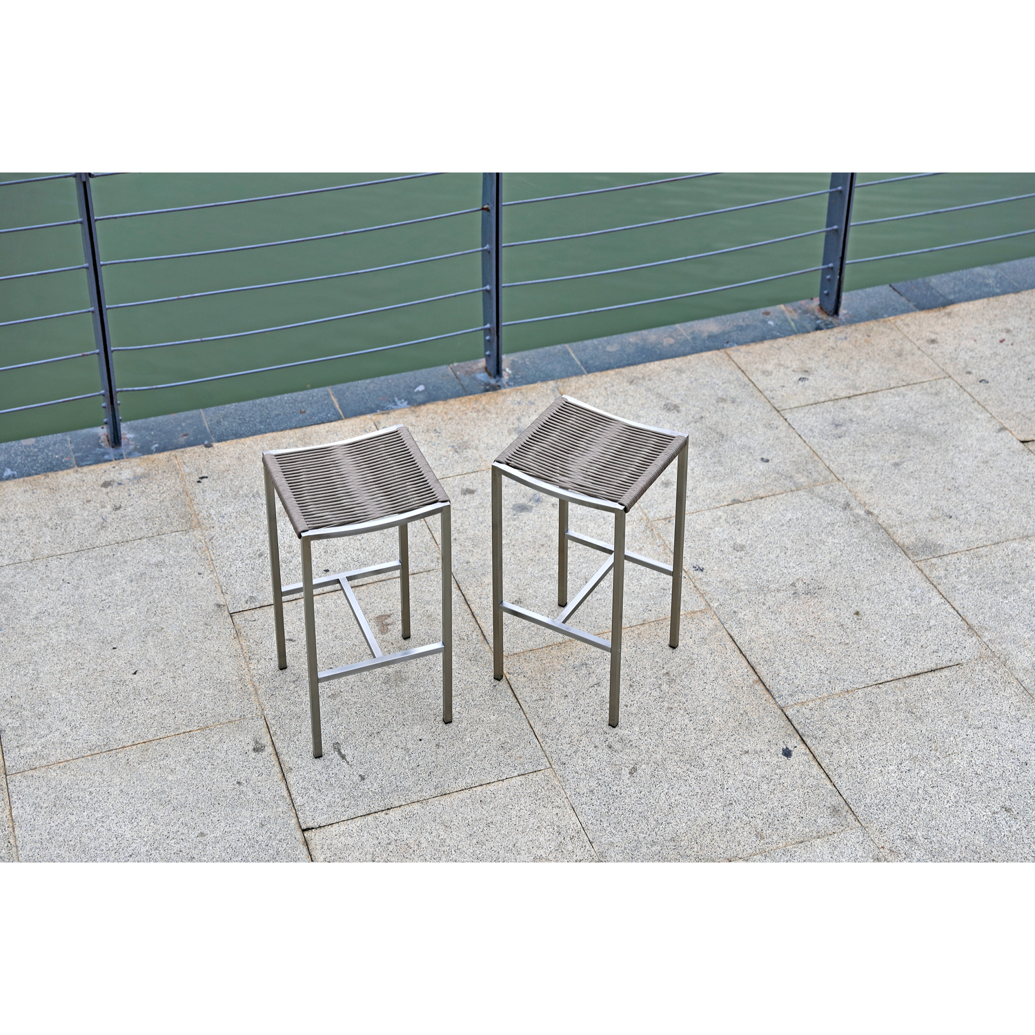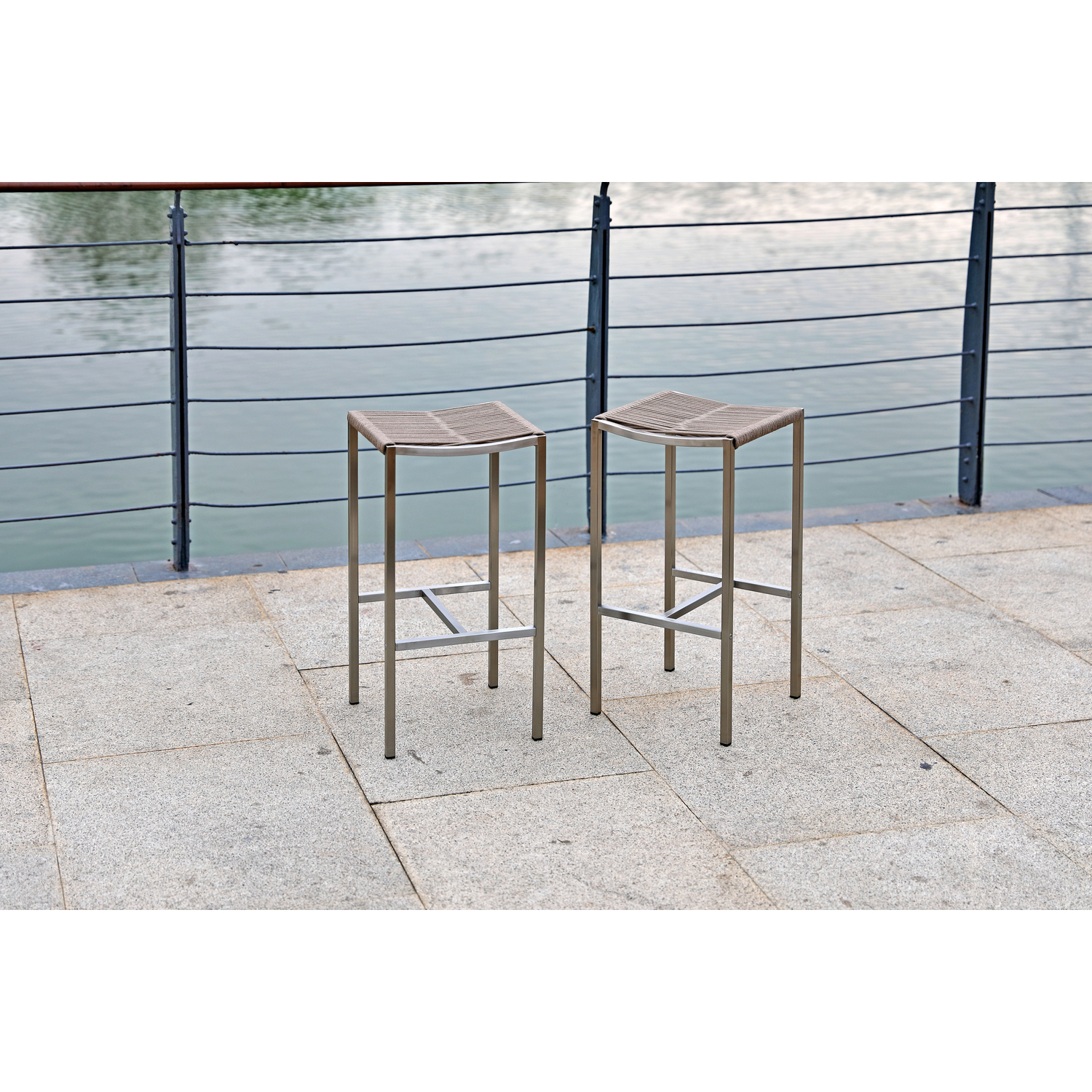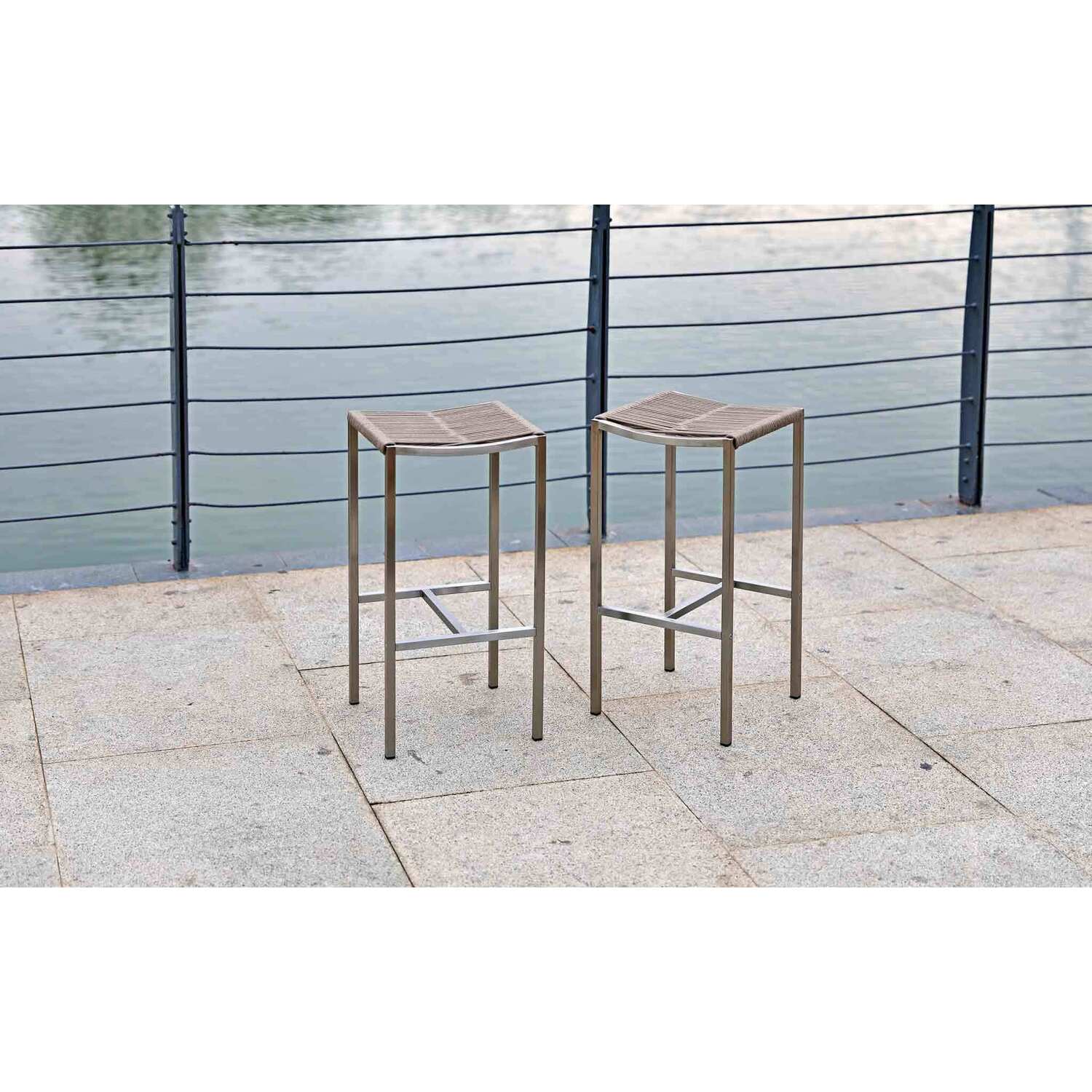 Stone Indoor/Outdoor Stain-steel Backless Rope Barstool, seat with rope weaving and stain steel ...