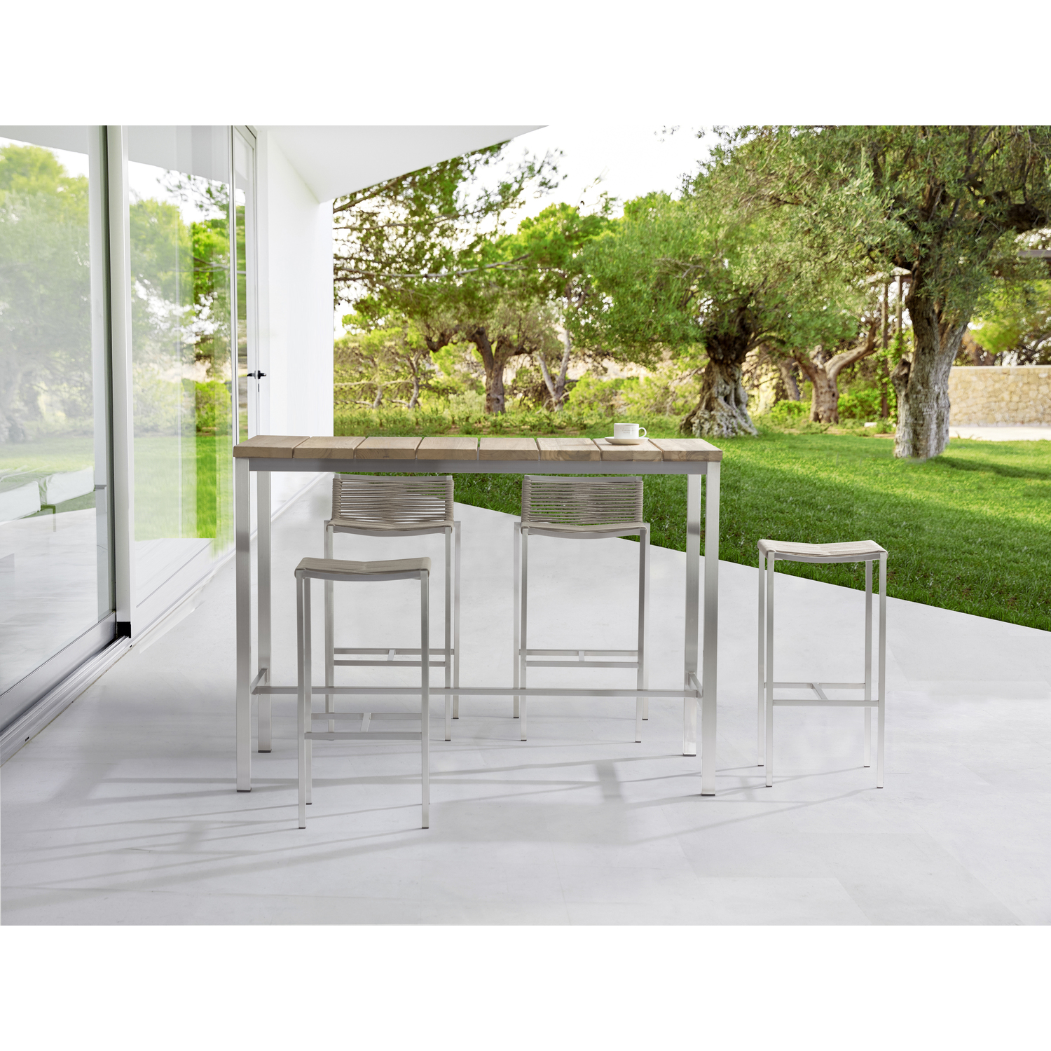 Whiteline Imports Stone Indoor/Outdoor Stain-steel Backless Rope Barstool, seat with rope weaving and stain steel ... BS1597-NBAC