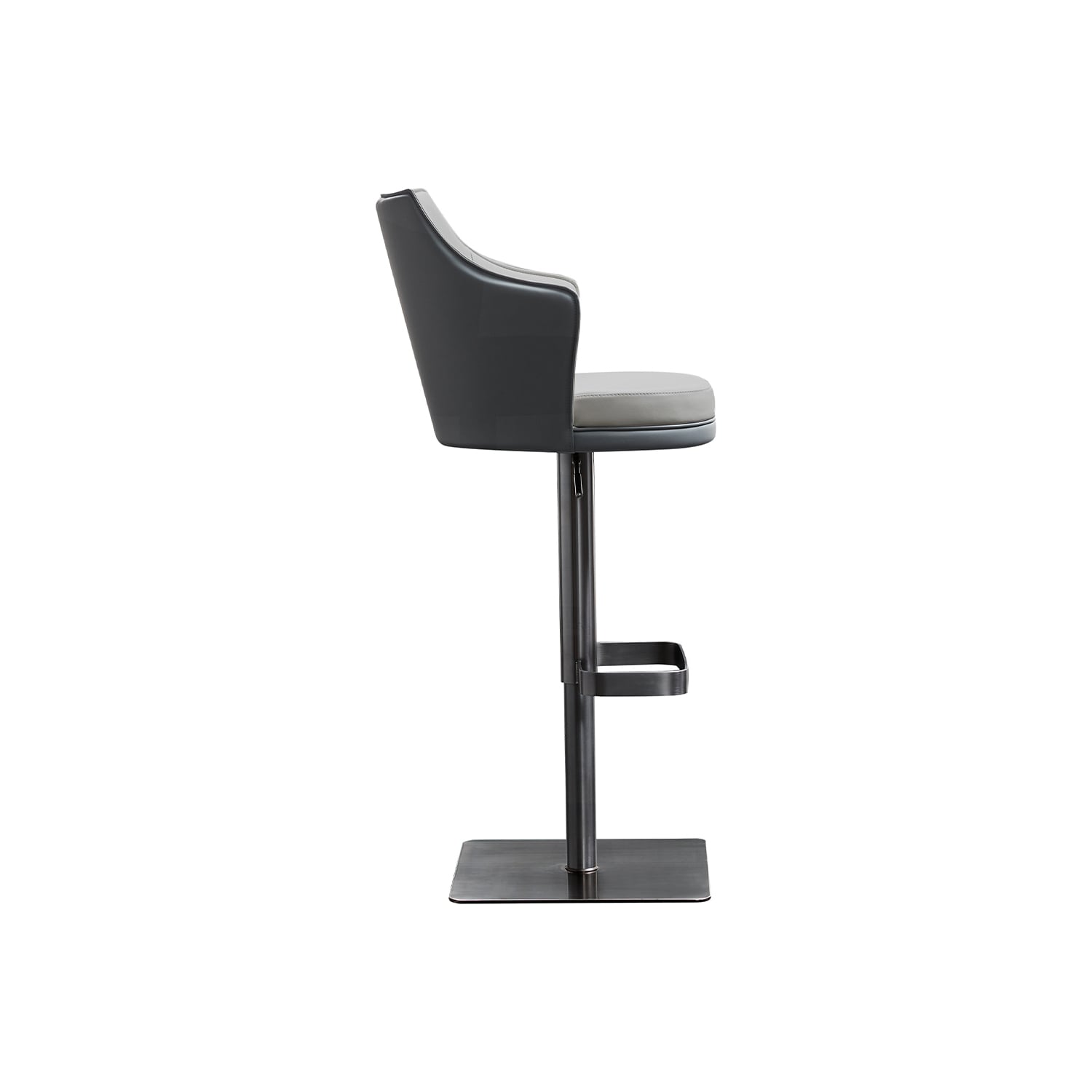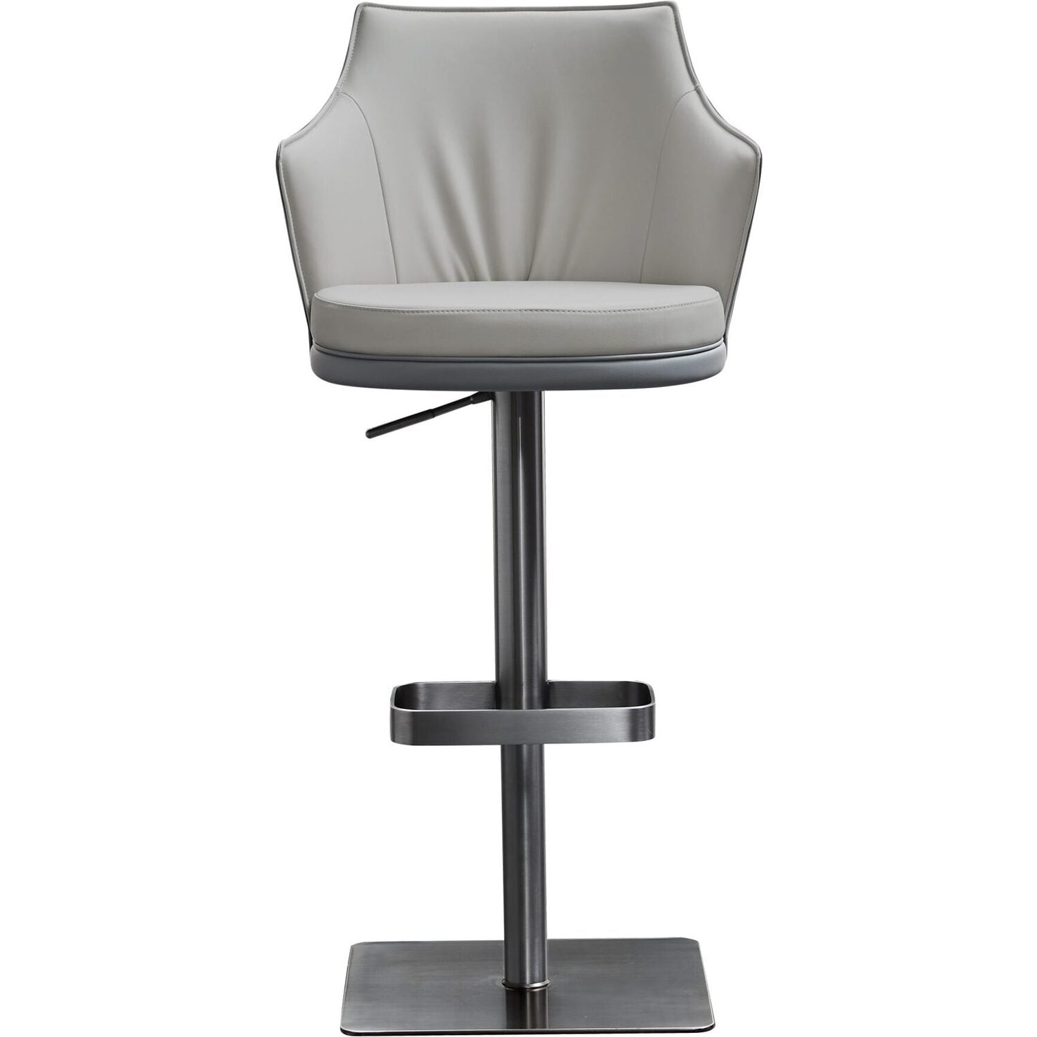 WhiteLine Baxter Barstool, Front in Light Grey Faux Leather IEK-288 Back in Dark Grey Faux Leather IEK-290, Swivel Base in Brushed Silver Stainless Steel, with Gaslift., 0696576759864, BS2006P-LGRY/DGRY