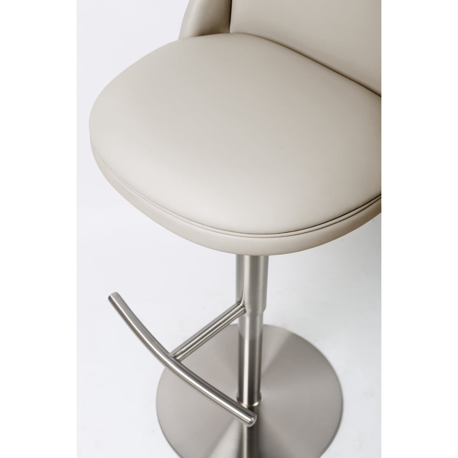WhiteLine Tommy Barstool, in Light Grey faux Leather IEK-288, Swivel Base in Brushed Silver Stainless Steel, with Gaslift, 0696576759871, BS2007P-LGRY