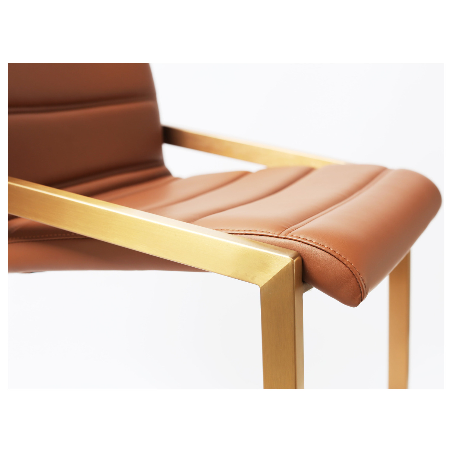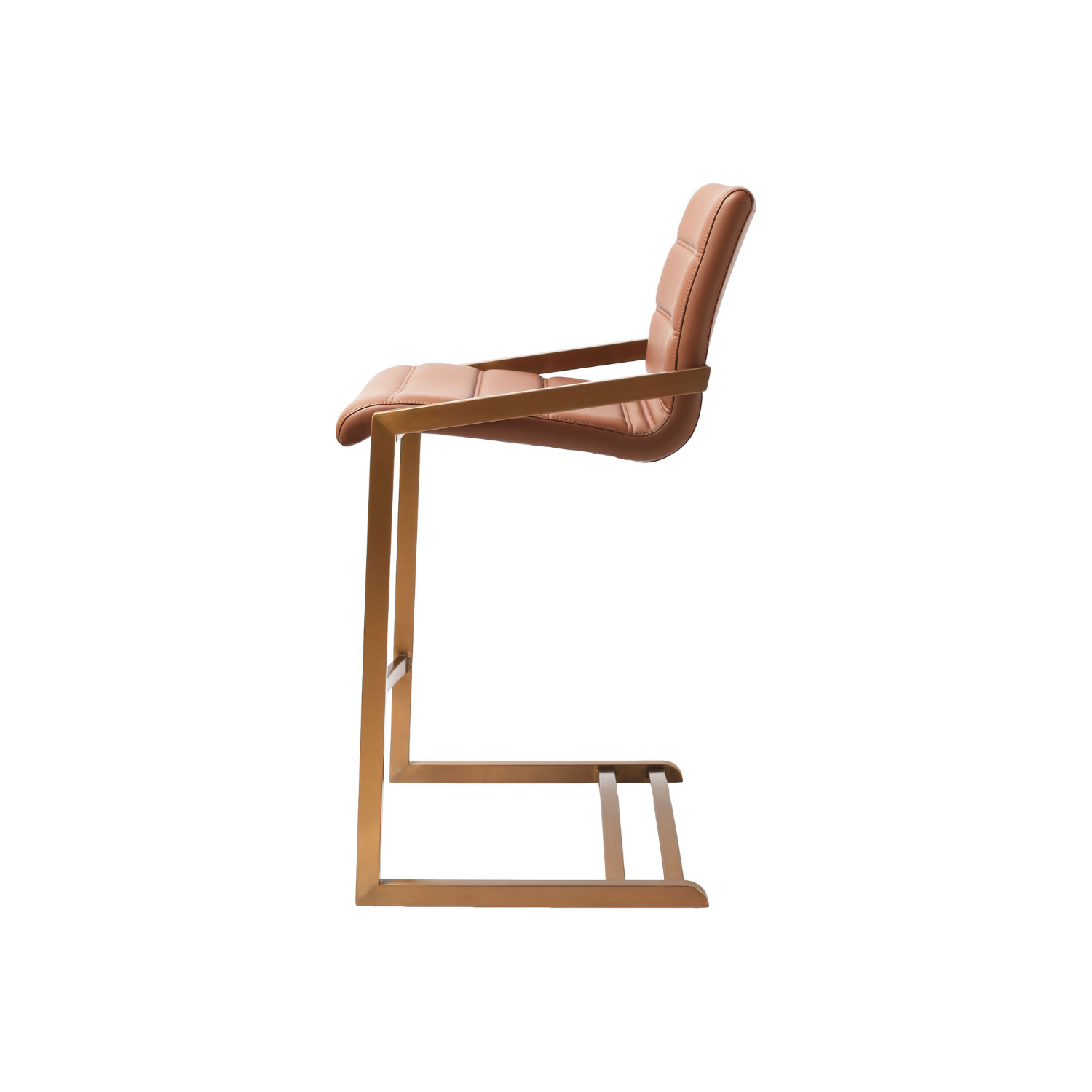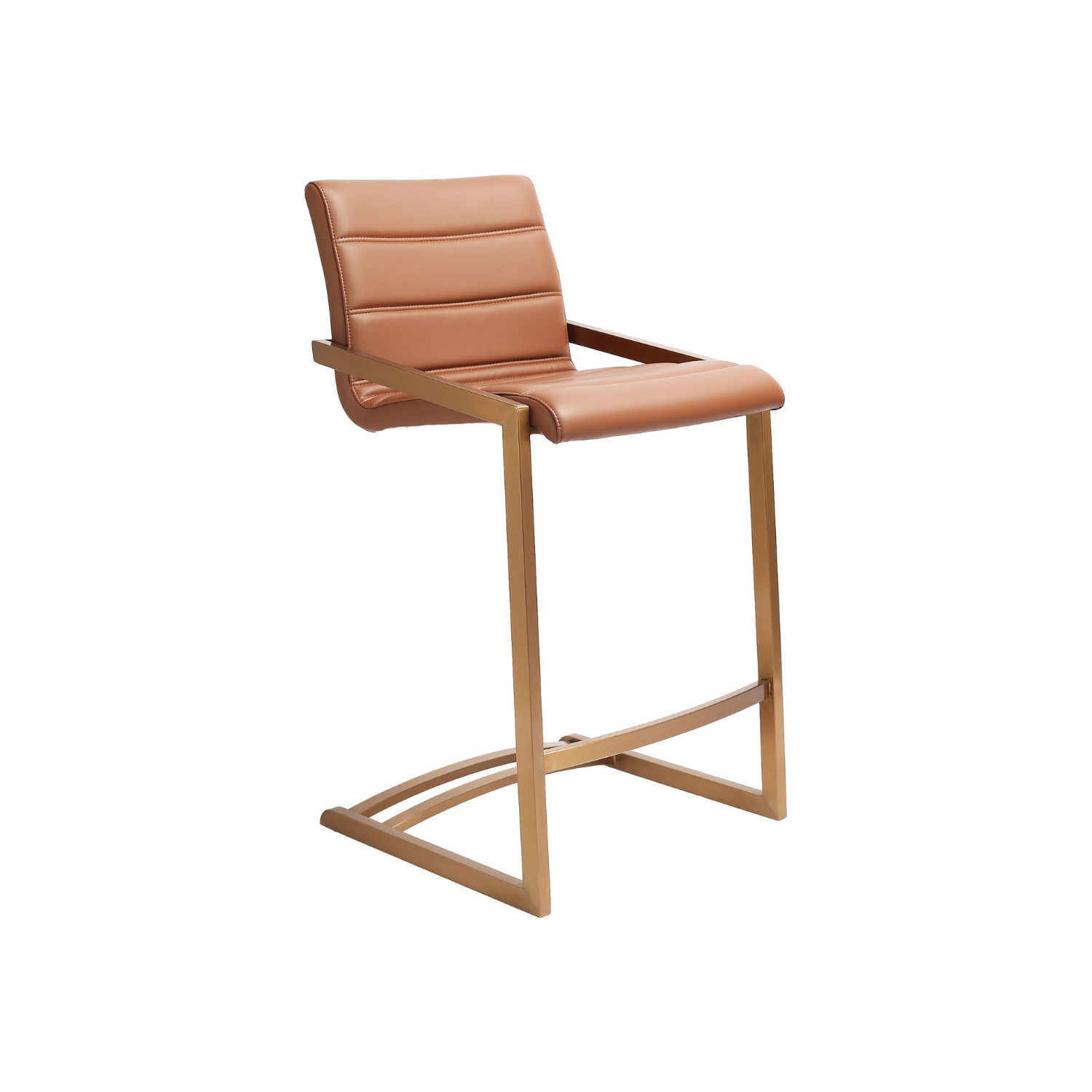 WhiteLine Mattia Counter Stool, in Brown Faux Leather IEK-273, Brushed Rose Gold Stainless Steel Base. Set of 2. , 0696576759888, BS2008CP-BRN