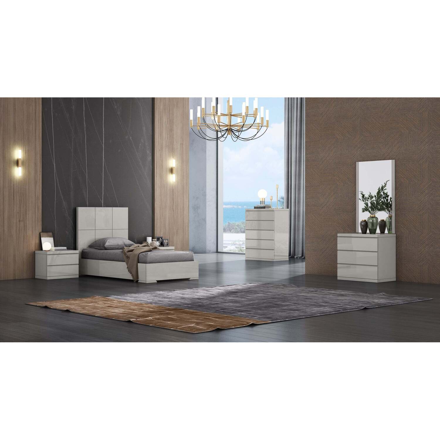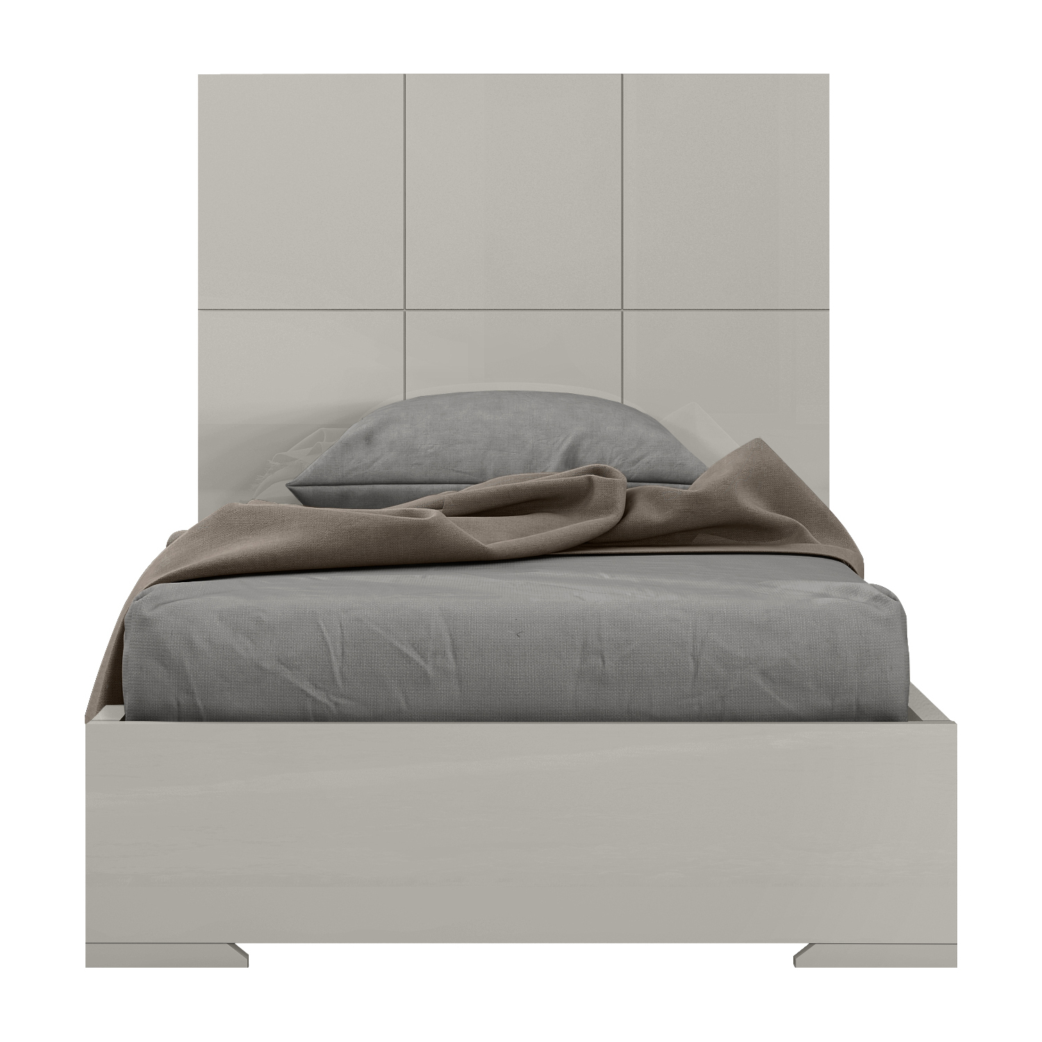 WhiteLine Anna Bed Twin, High Gloss Light Grey Lacquer ILP-8890213HG, Headboard with Squares Design., 0696576756016, BT1207-LGRY