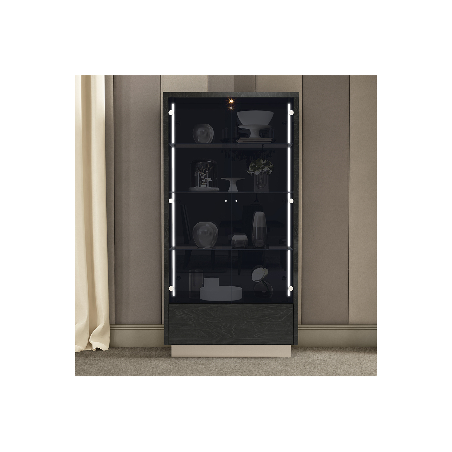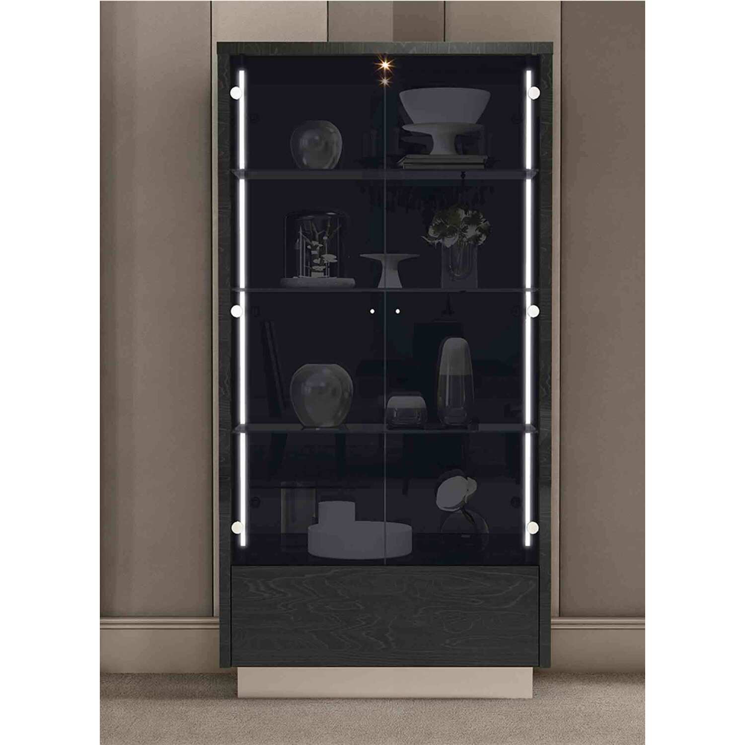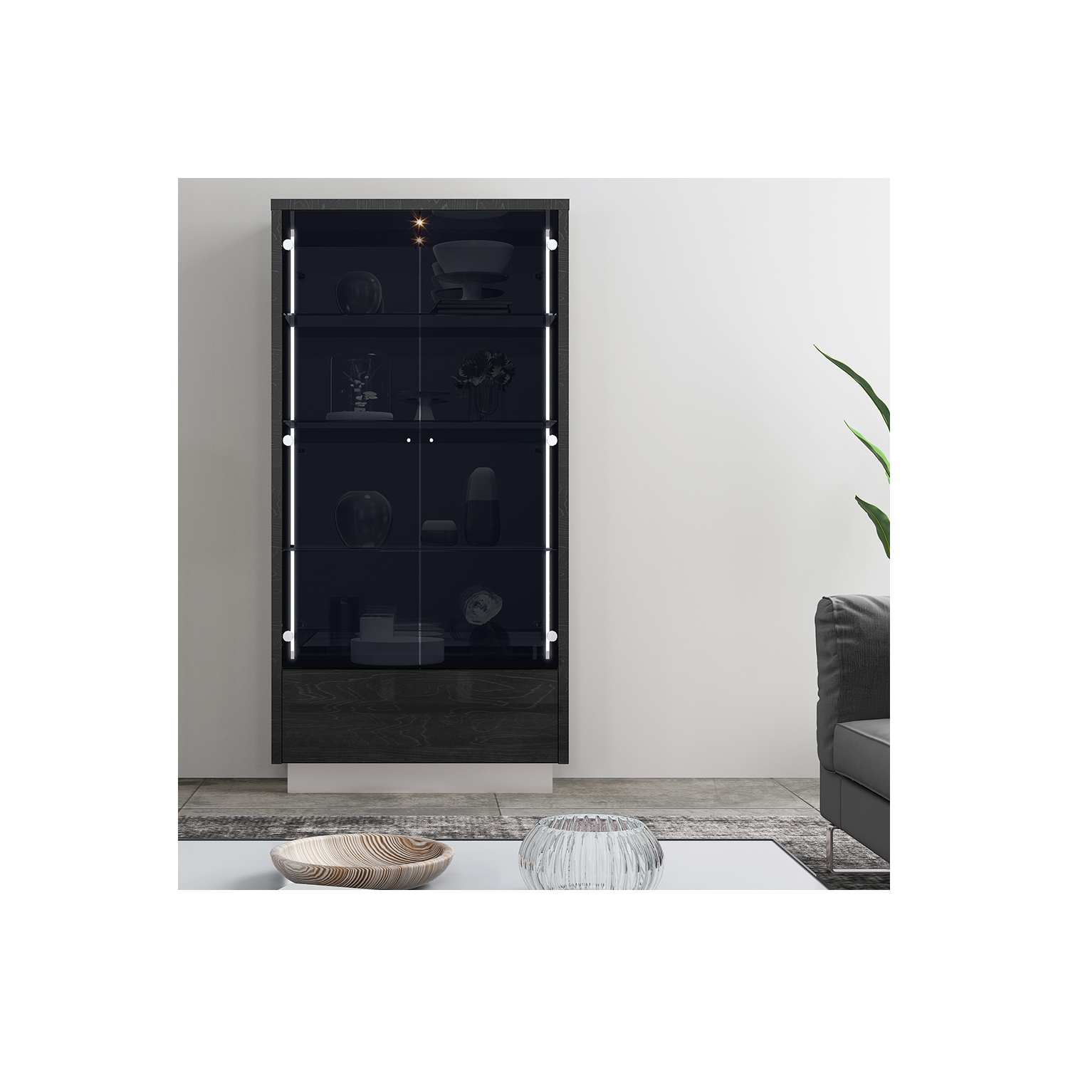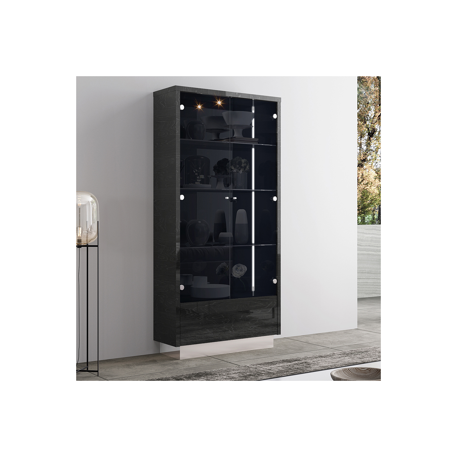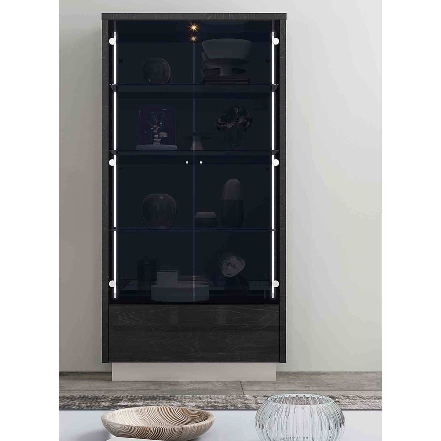 Los Angeles Vitrine Grey high gloss, Back Mirror with LED light,, Adjustable 3 glass shelves. 1 ...