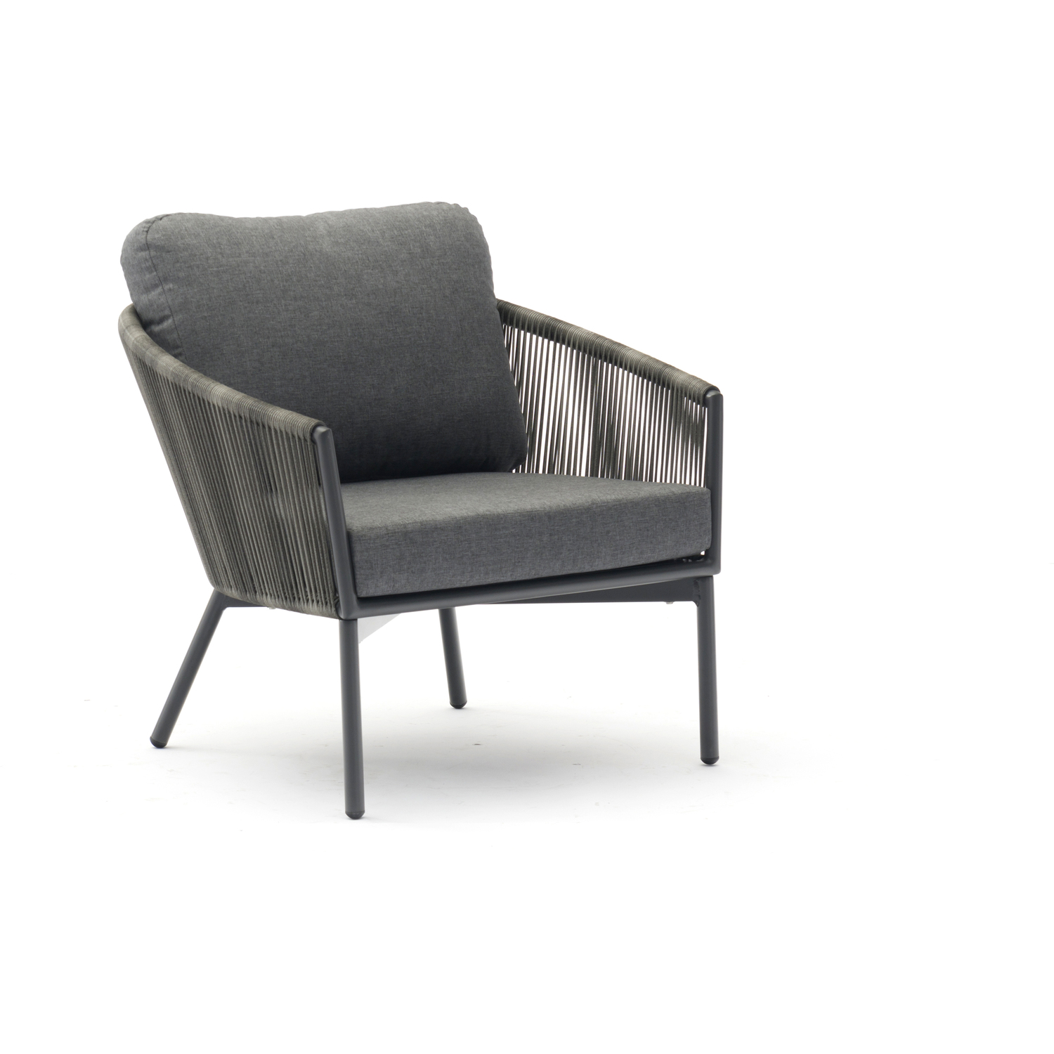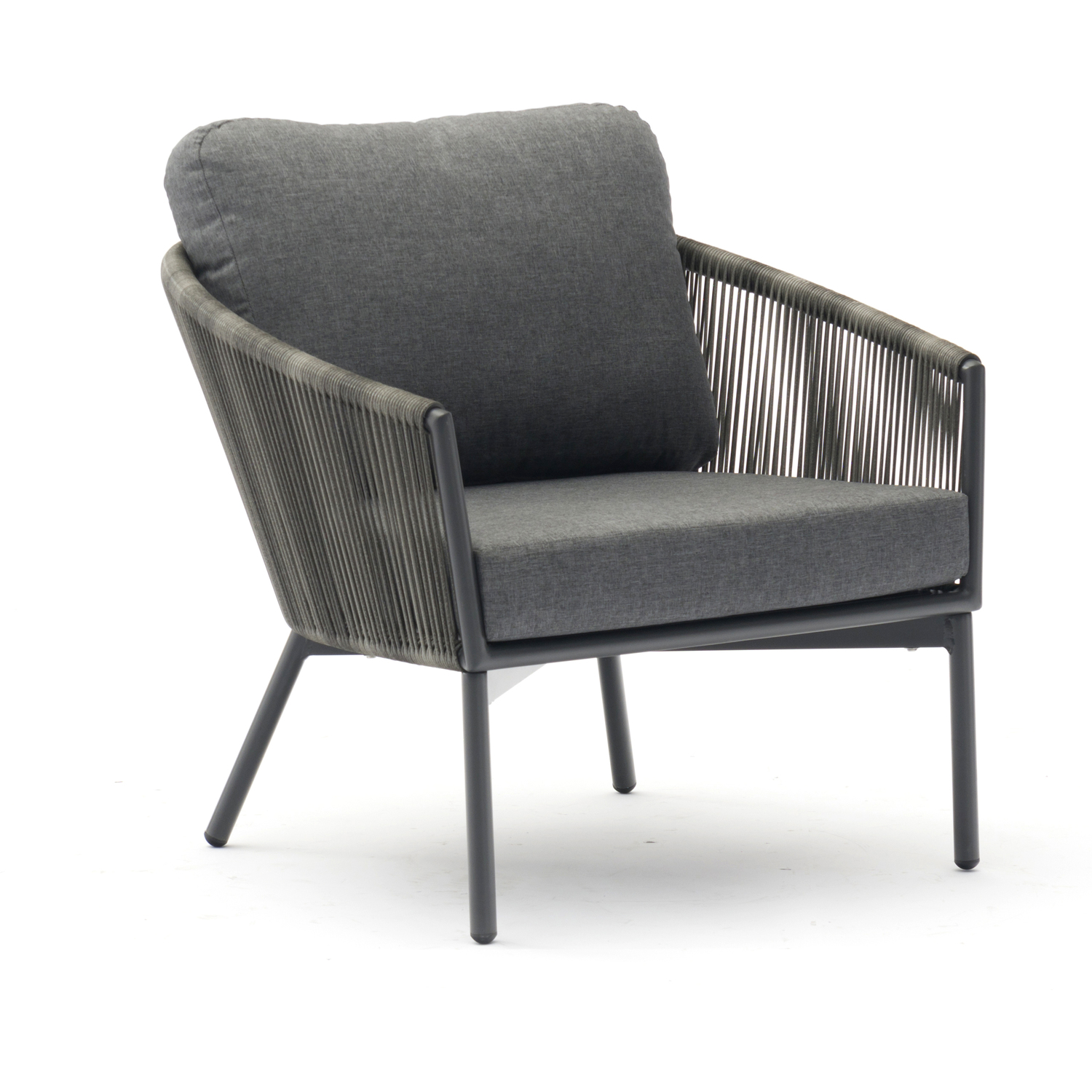 Yarrow Chair and Ottoman in Dark Gray Wicker and metal grey powder-coating legs