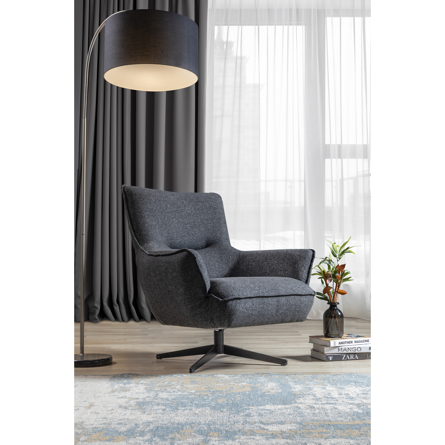 WhiteLine Fatsa Swivel Chair, Dark Grey Fabric TCA-Gina6161, Base in Black Powder-Coated Steel., 0696576754999, CH1757F-DGRY