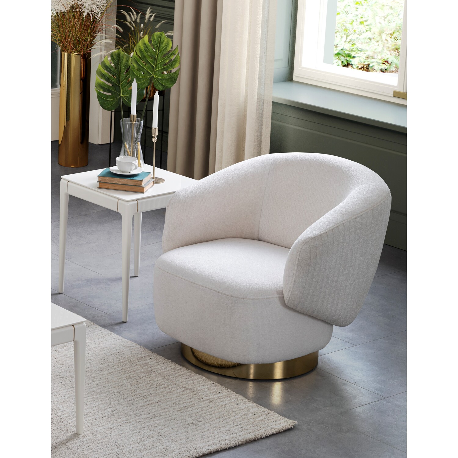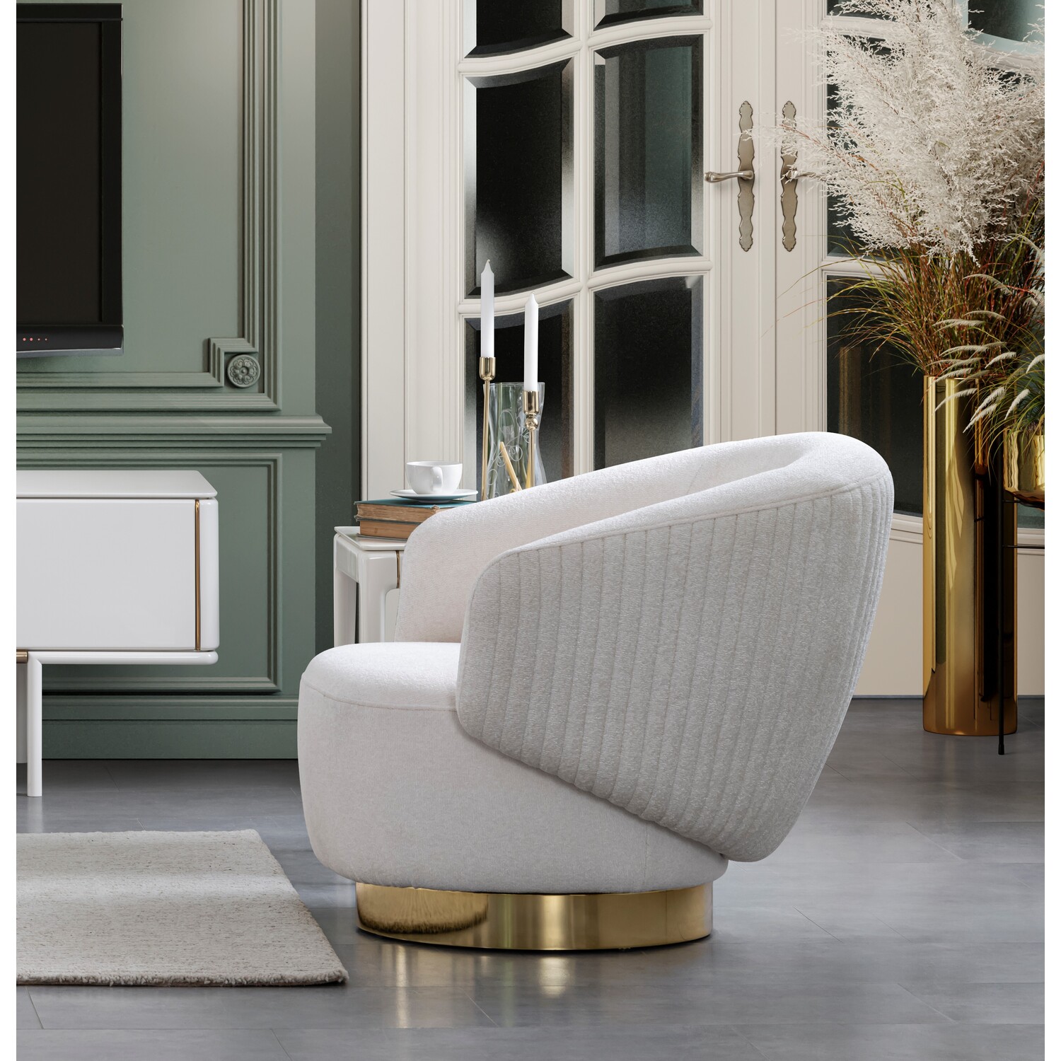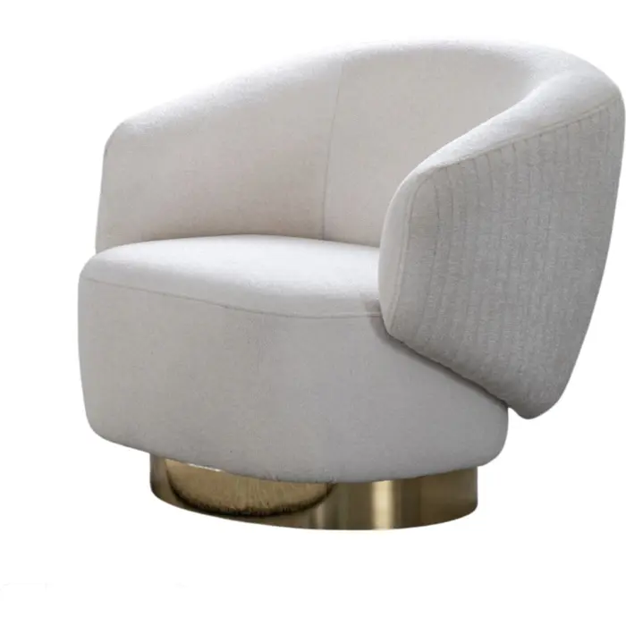 WhiteLine Erzin Accent Chair, White Fabric TCA-Rosso01, Swivel Base in Polished Gold Steel., 0696576755002, CH1758F-WHT