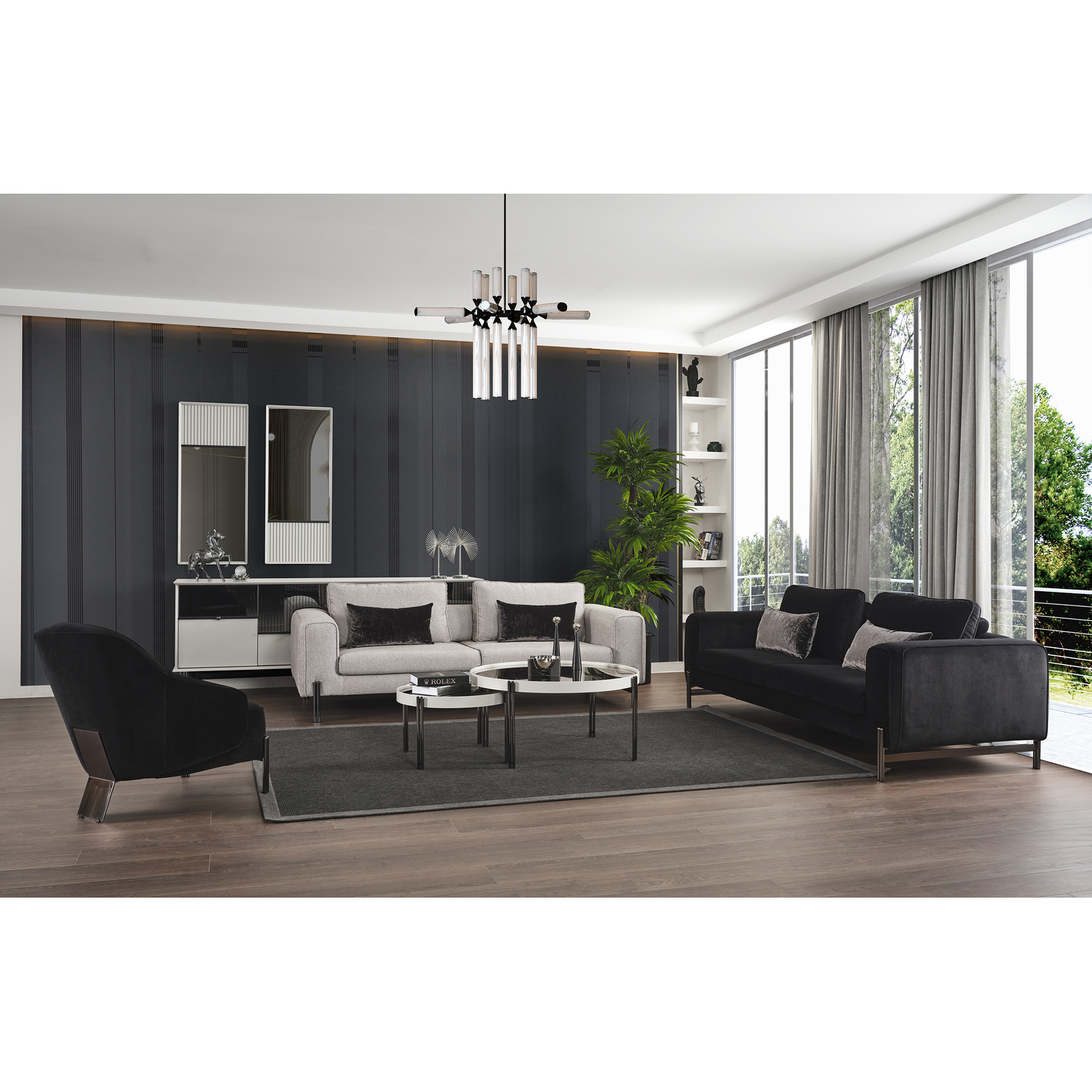 WhiteLine Favori Accent Chair, Black Velvet TCA-Blue 1048, Legs in Smokey Grey Steel., 0696576755323, CH1840-BLK