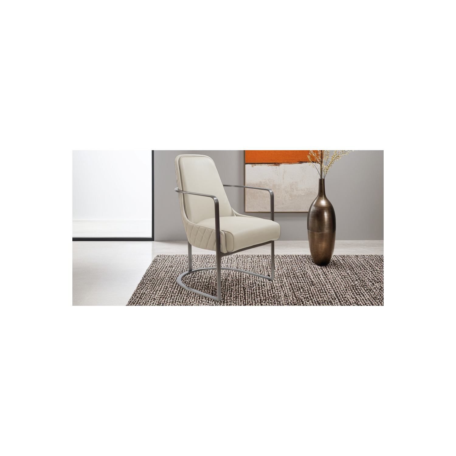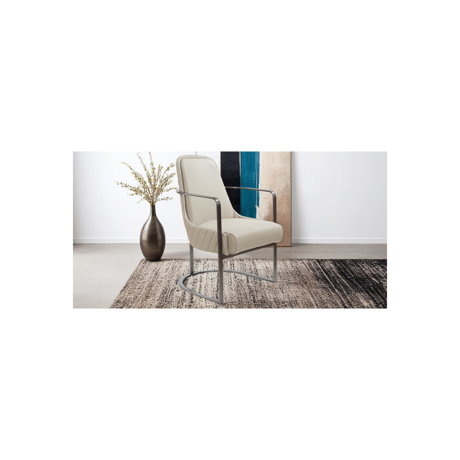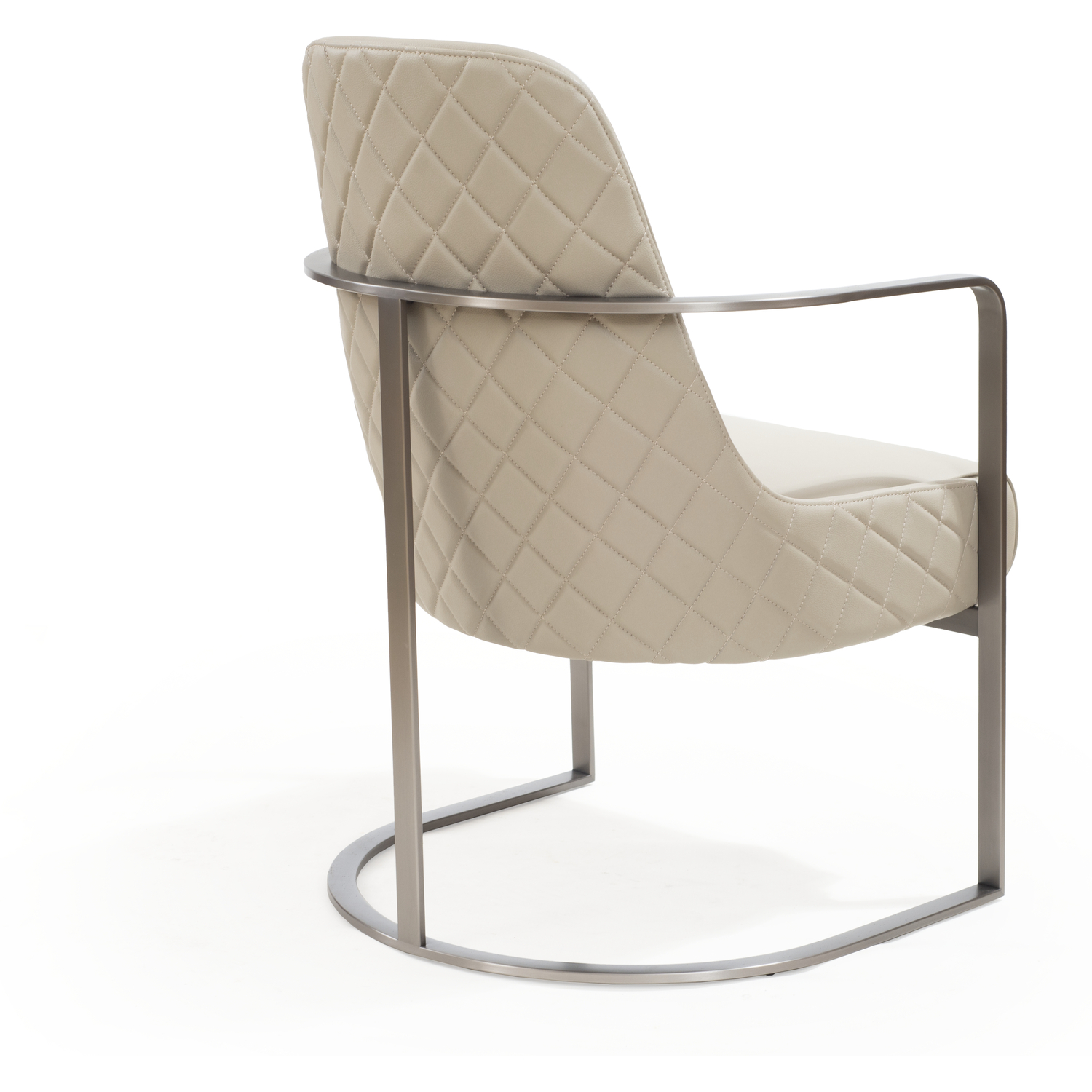 WhiteLine Bea Accent Chair, Light Grey Faux Leather BIX-1046, Padded Back with Lozenges Design, Frame and Base in Brushed Gun Black Steel BIX-SS07-STL-BLK, 0696576760112, CH1949P-LGRY