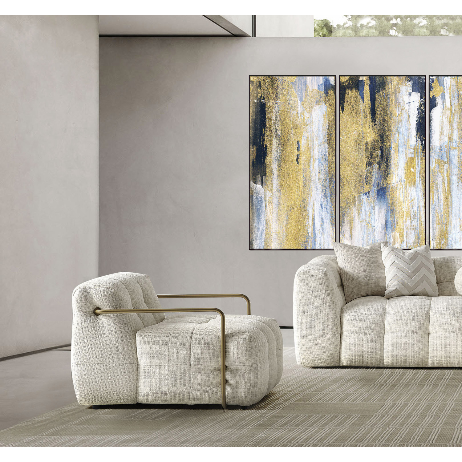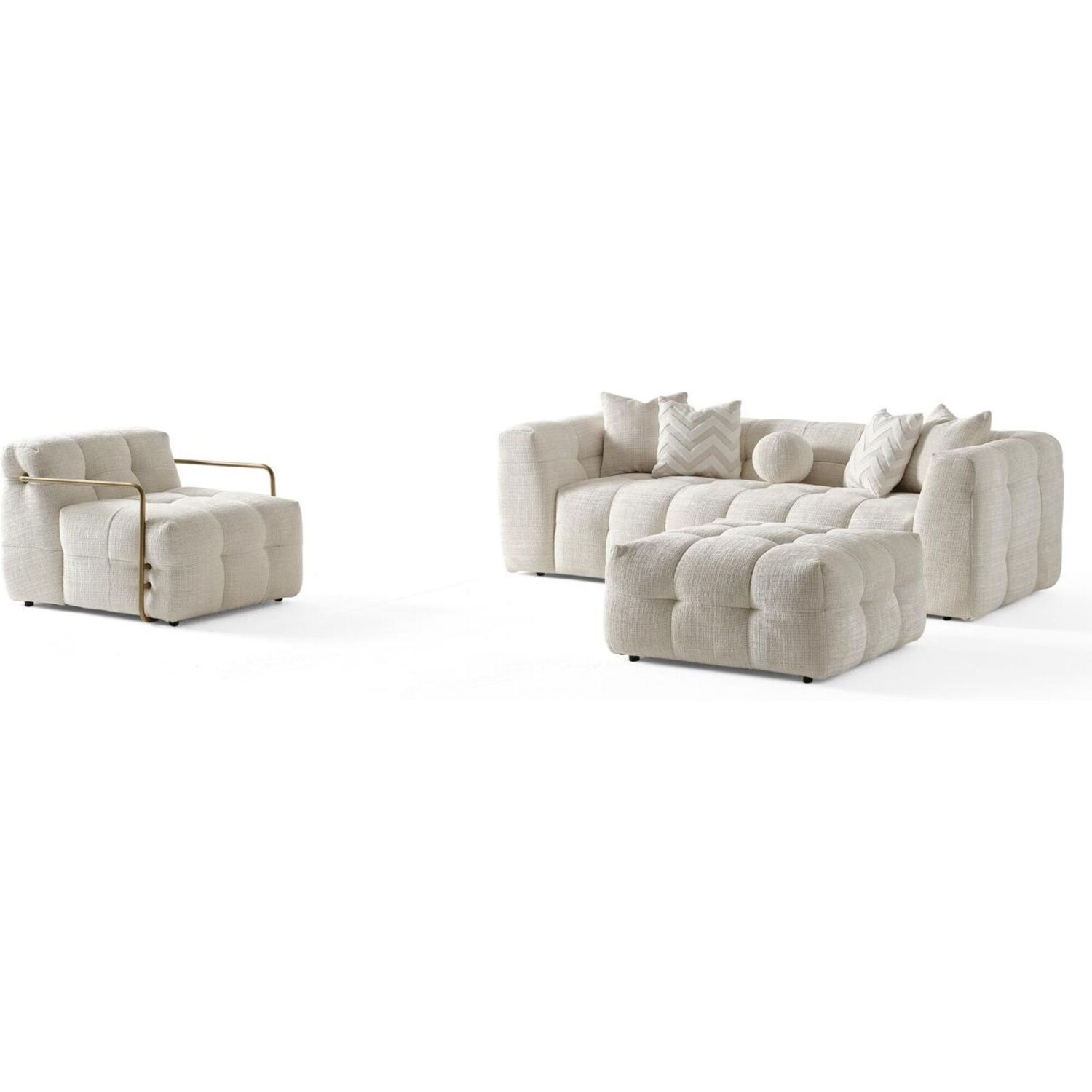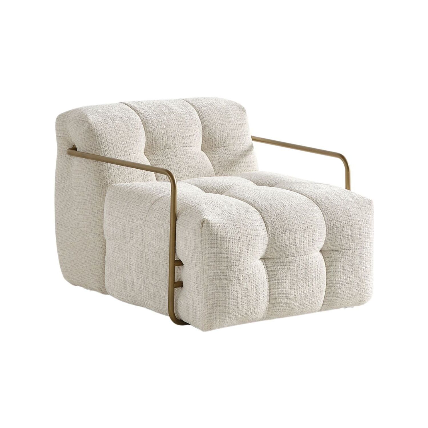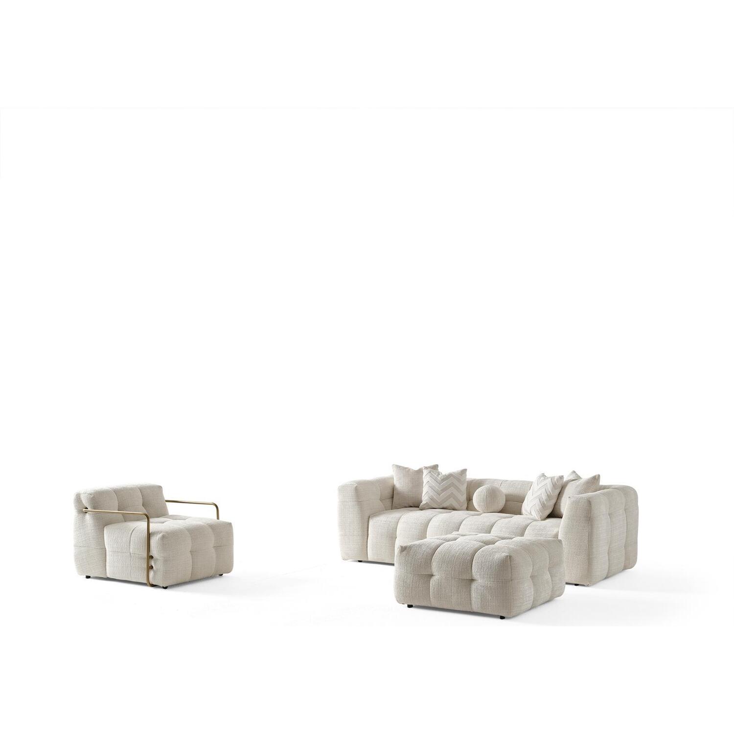 WhiteLine Cloud Armchair Upholstered in high-quality Fire-Resistant Beige Chenille Fabric AIC-MARBELA01, With Brushed Gold Stainless steel Arms. The Plush Seating is enhanced By Foam 32-density, And Plastic Legs Bottons., 0696576760976, CH2049F-BEI