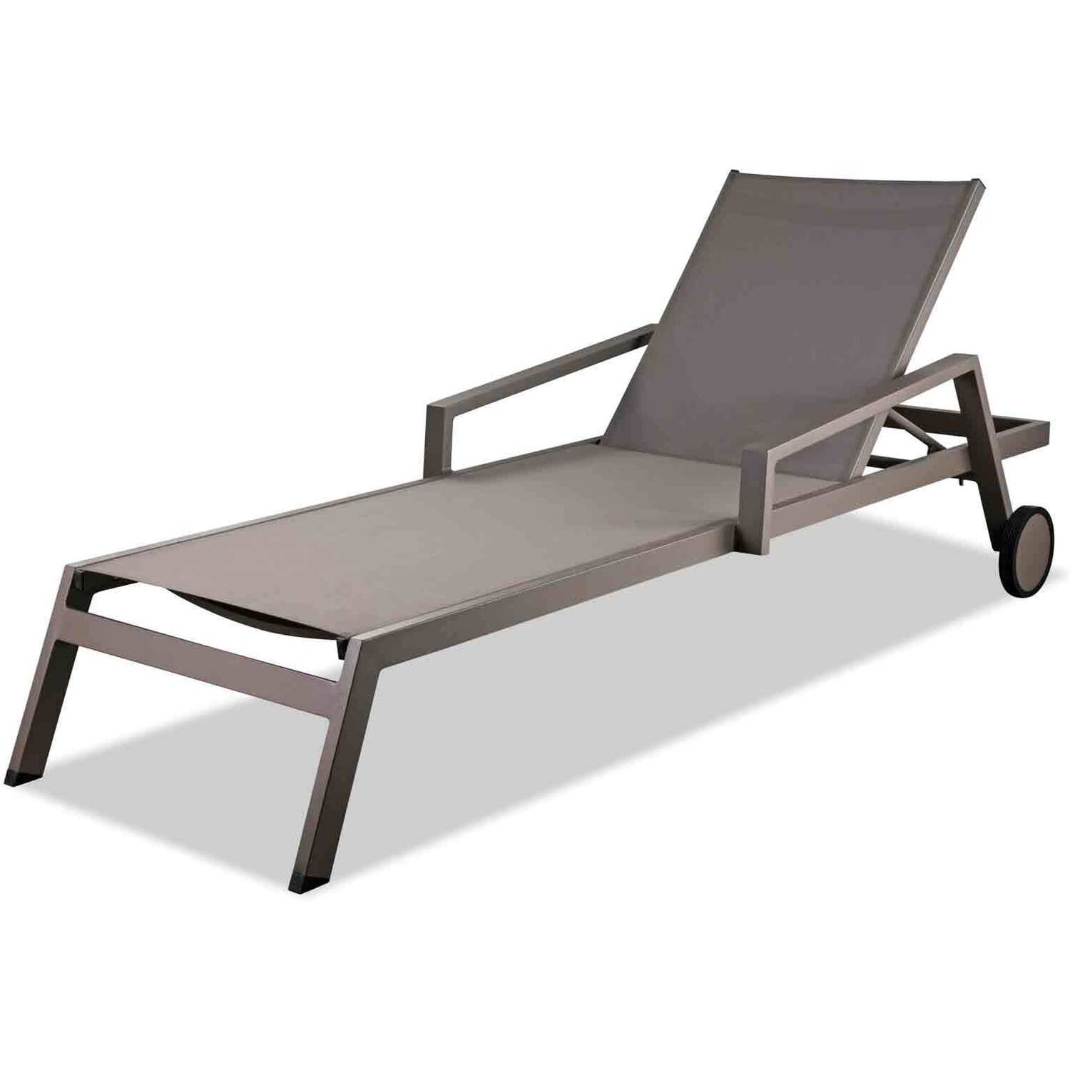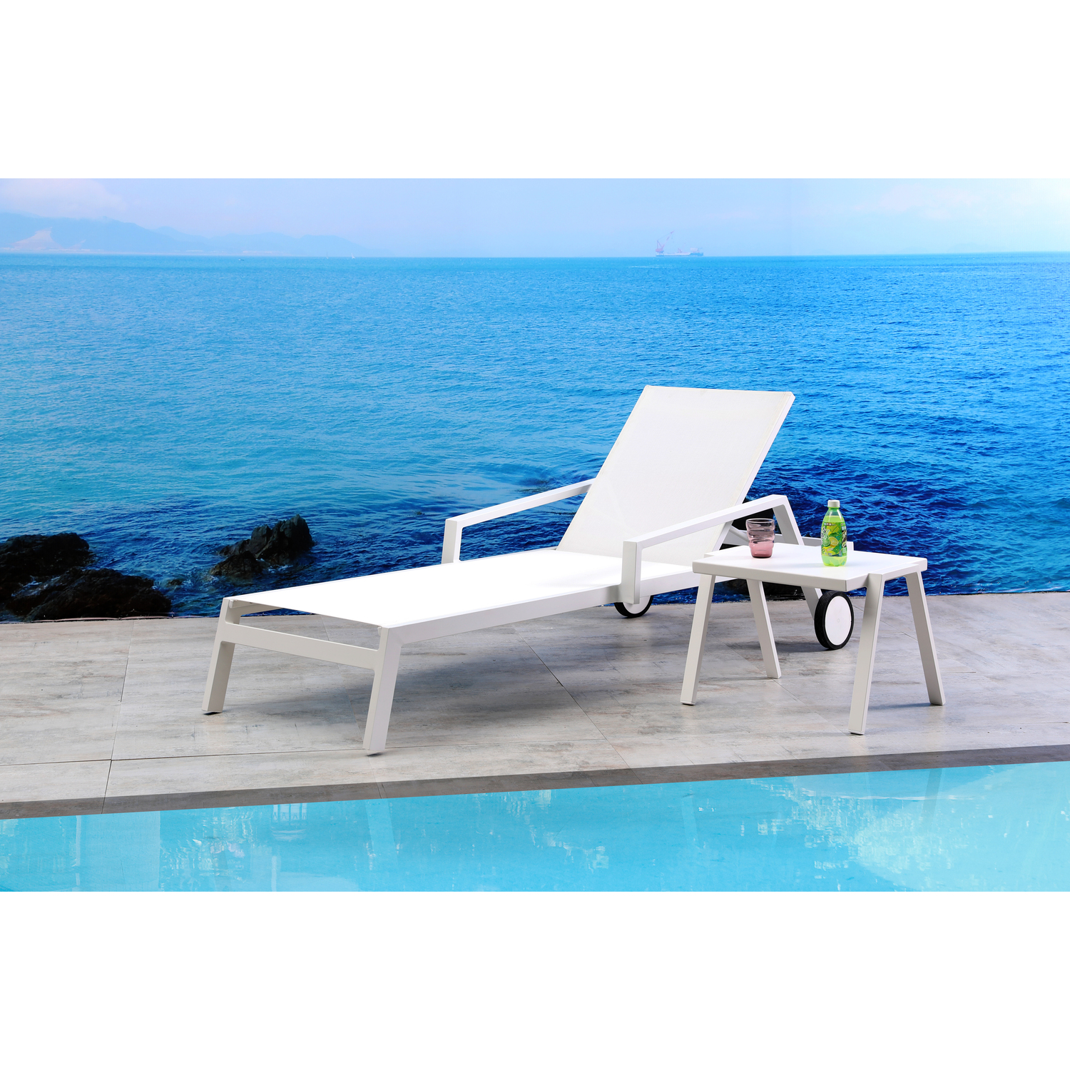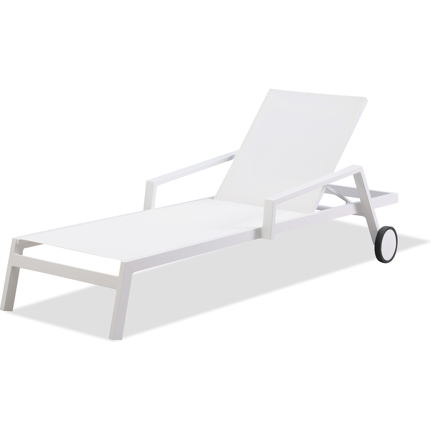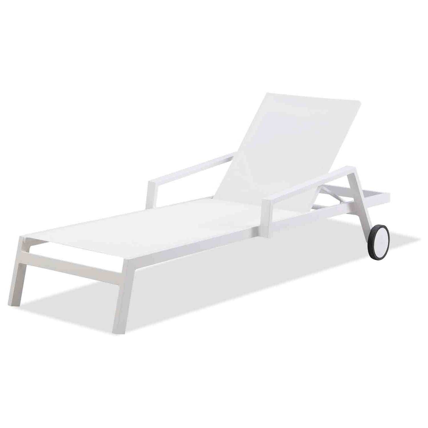 Bondi Outdoor Chaise Lounge Aluminium matte White color, white textilene and two wheels, Stackable