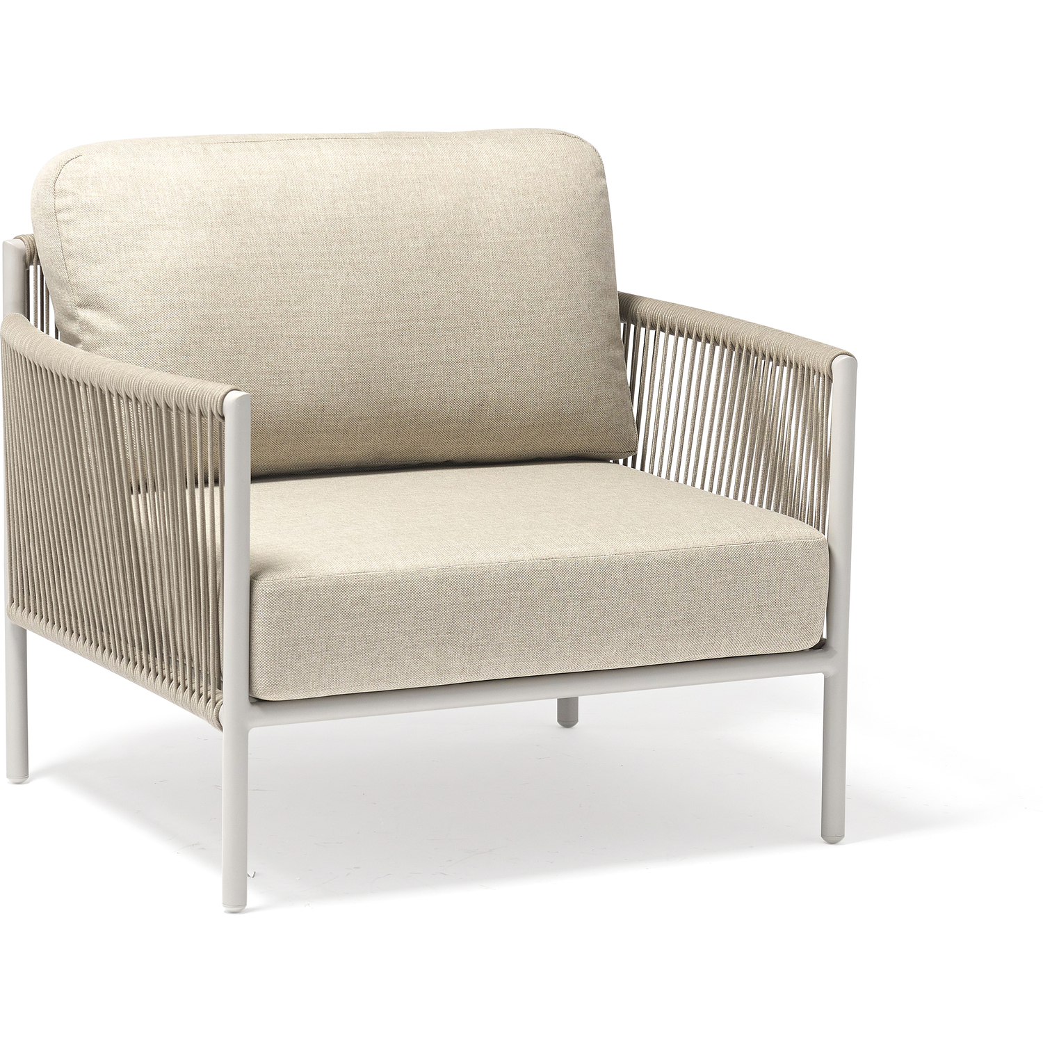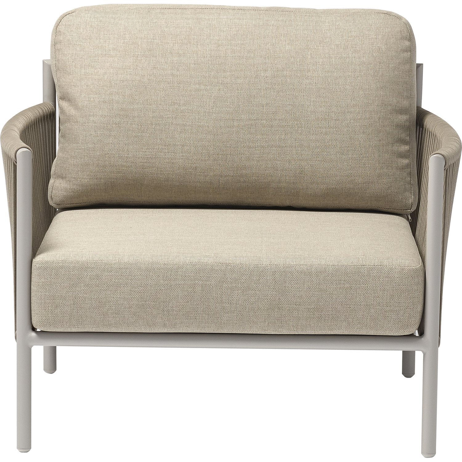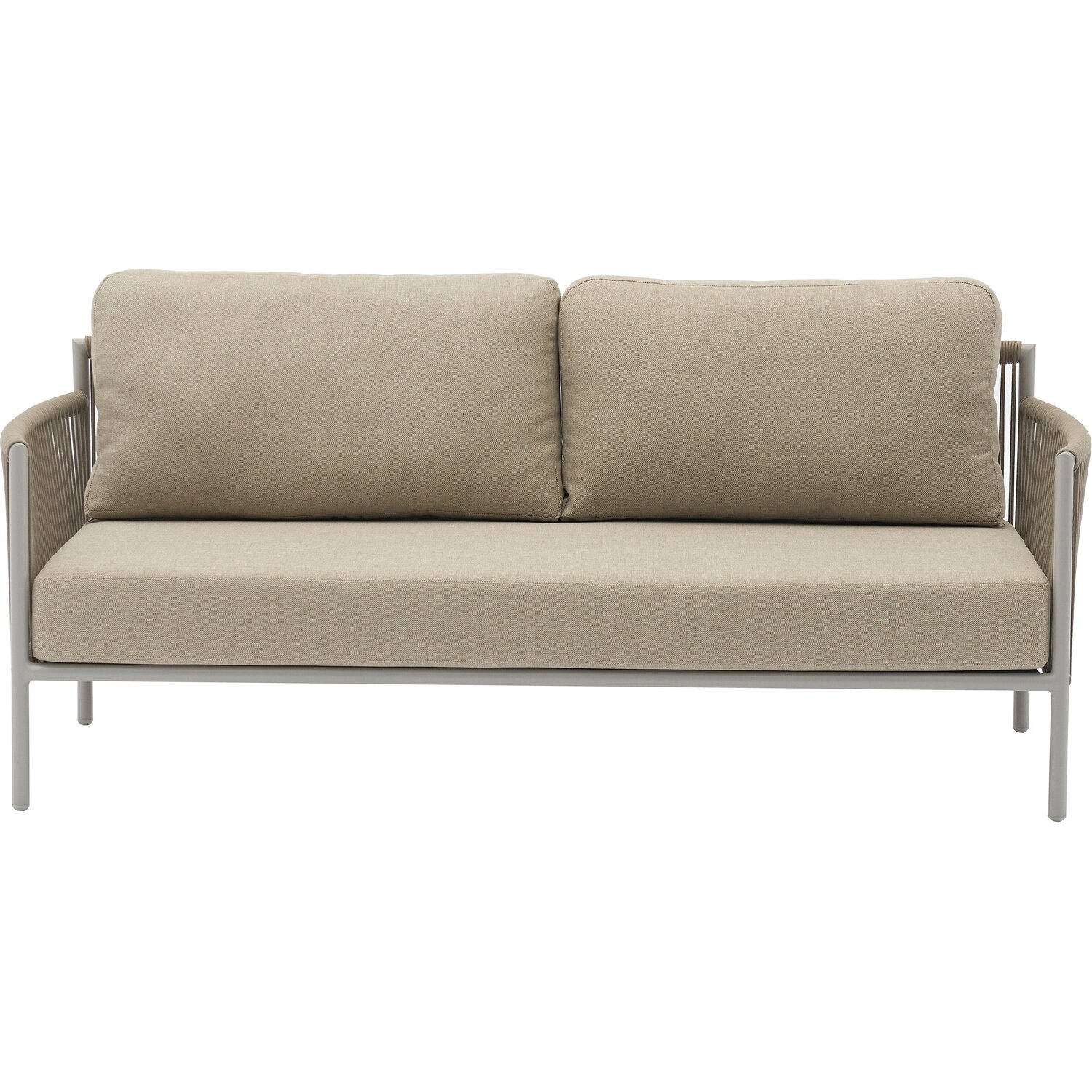 WhiteLine Catalina Outdoor Collection, 4 Pieces: Love Seat, Two Single Chairs and Flower Shape Coffee Table. Base and Frame in Light Grey Aluminum AUG-WT0086 and Taupe Olefin Rope AUG-OL6...Seat and Back Cushions in Taupe Fabric AUG-20180101. Table Top in Ligh, 0696576752544, COL1751-TAU