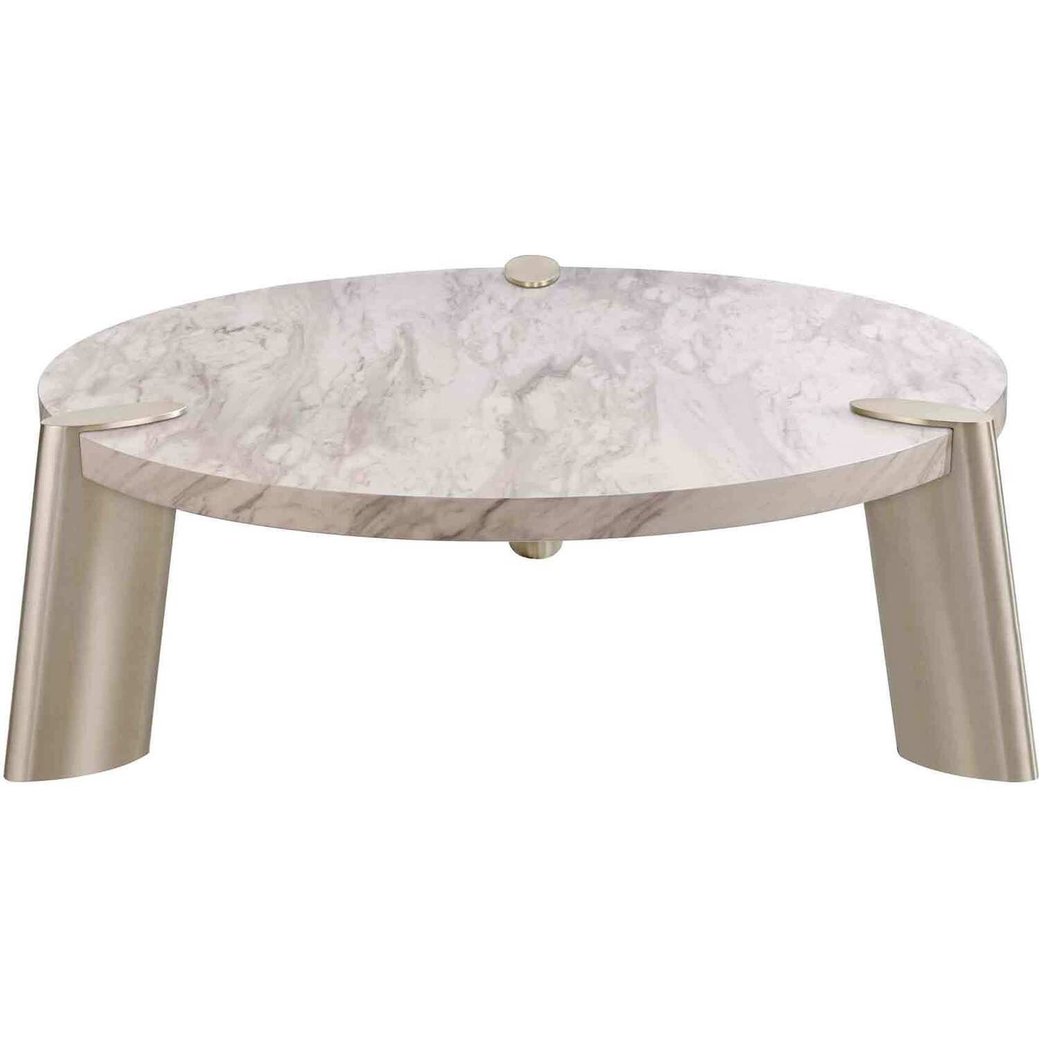 Whiteline Imports Mimeo Large round Coffee Table, White Marble Paper top, Legs brushed stainless steel. CT1657L-MAR
