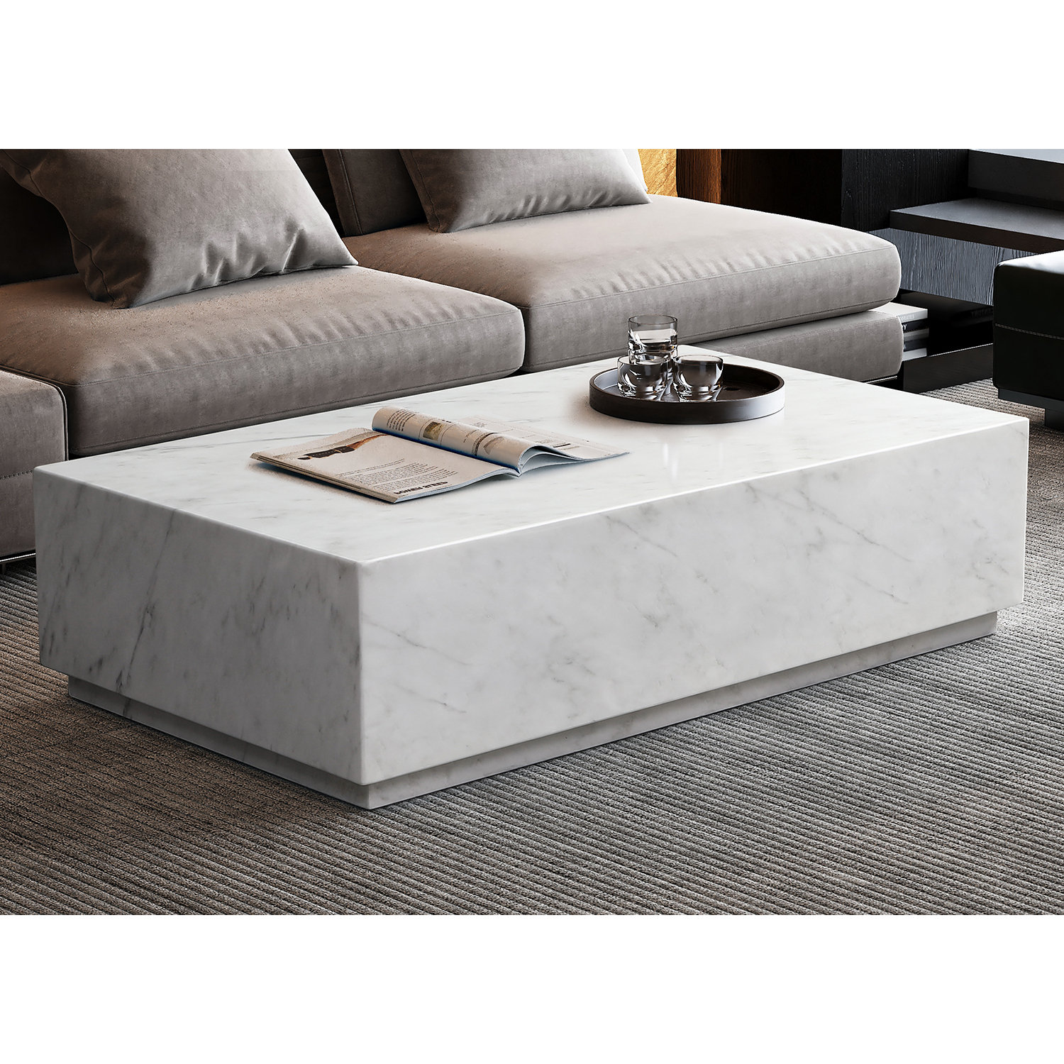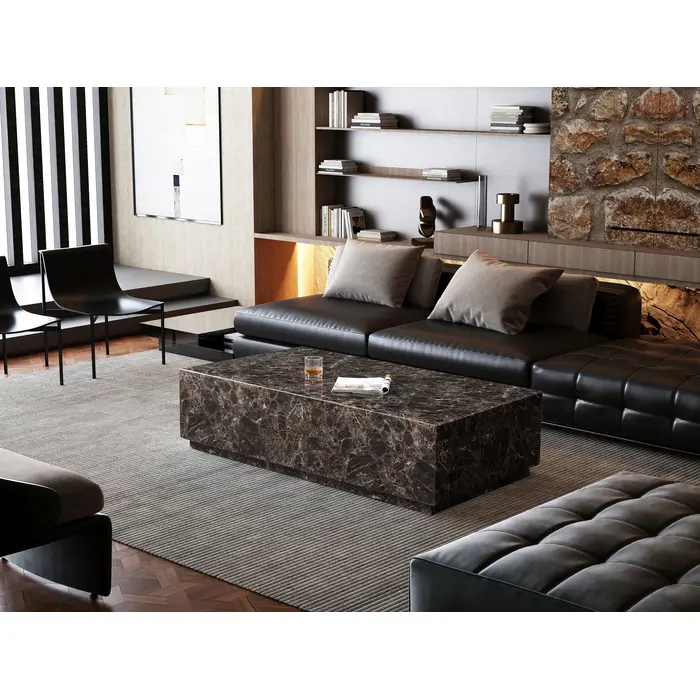 WhiteLine Iris Rectangular Coffee Table, High Gloss Brown Marble SOC-Dark Emperador (MRB-DEMP), without Castors., 0696576759727, CT1927R-DEMP