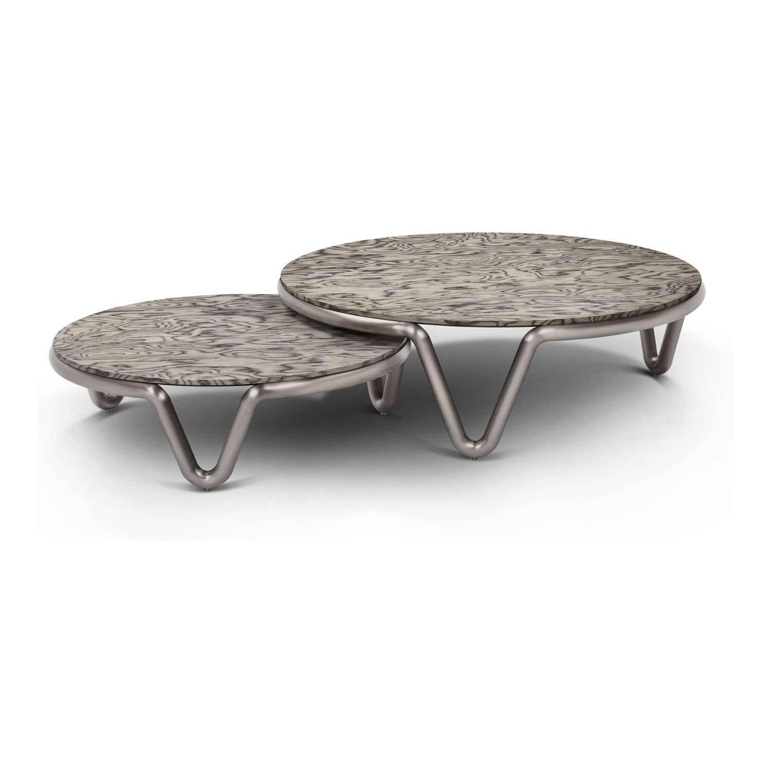 WhiteLine Anaconda Large Coffee Table, MDF Top Covered in Maple Veneer Matte Finish Color OHM-MP2403, with Stainless Steel Base in Brushed Nickel OHM-WJ01., 0696576760624, CT2035L-GRY