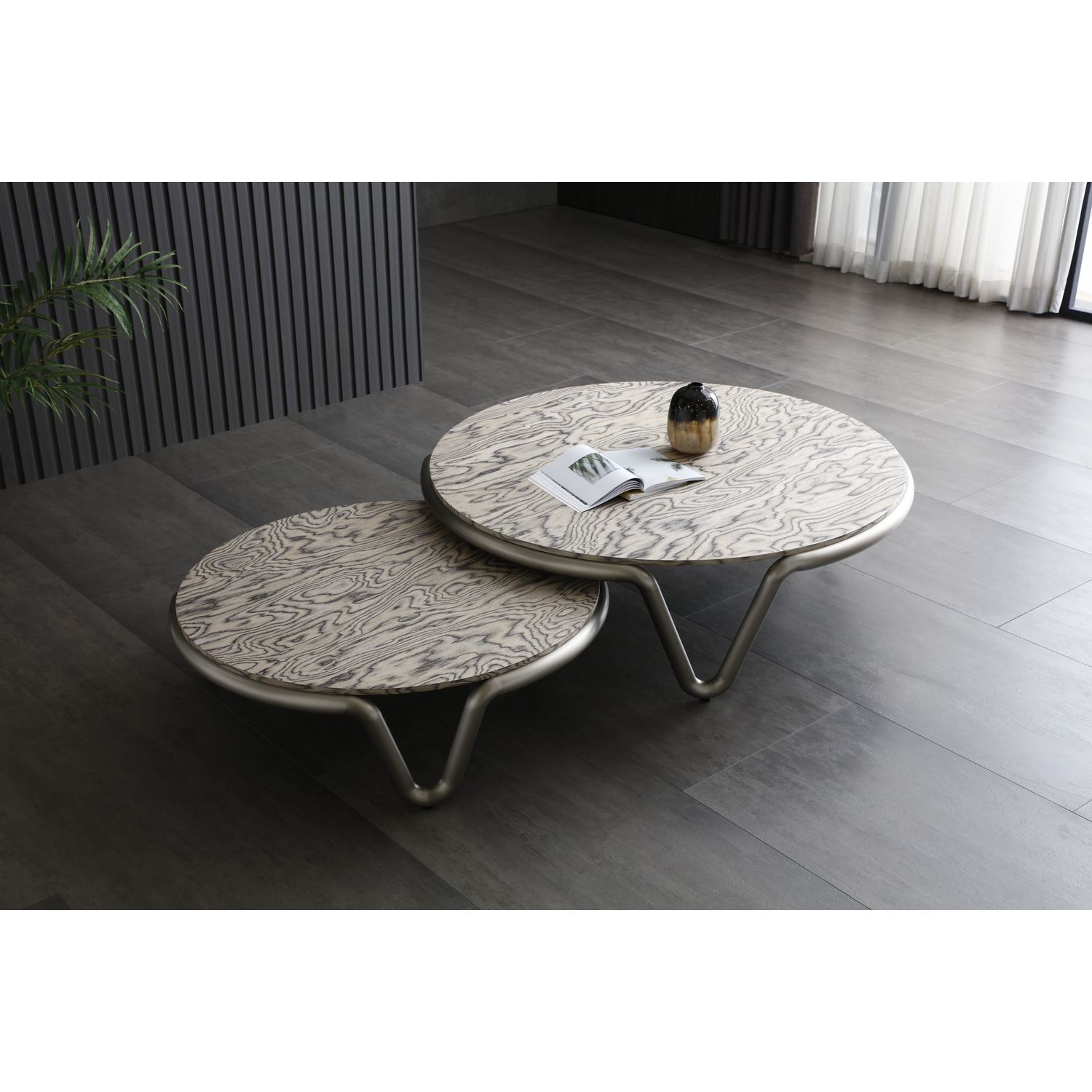 WhiteLine Anaconda Small Coffee Table, MDF Top Covered in Maple Veneer Matte Finish OHM-MP2403, with Stainless Steel Base in Brushed Nickel OHM-WJ01., 0696576760631, CT2035S-GRY