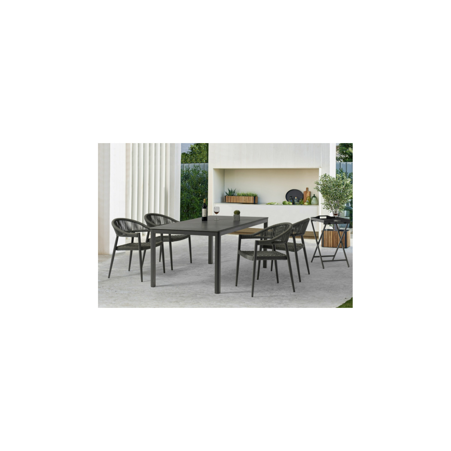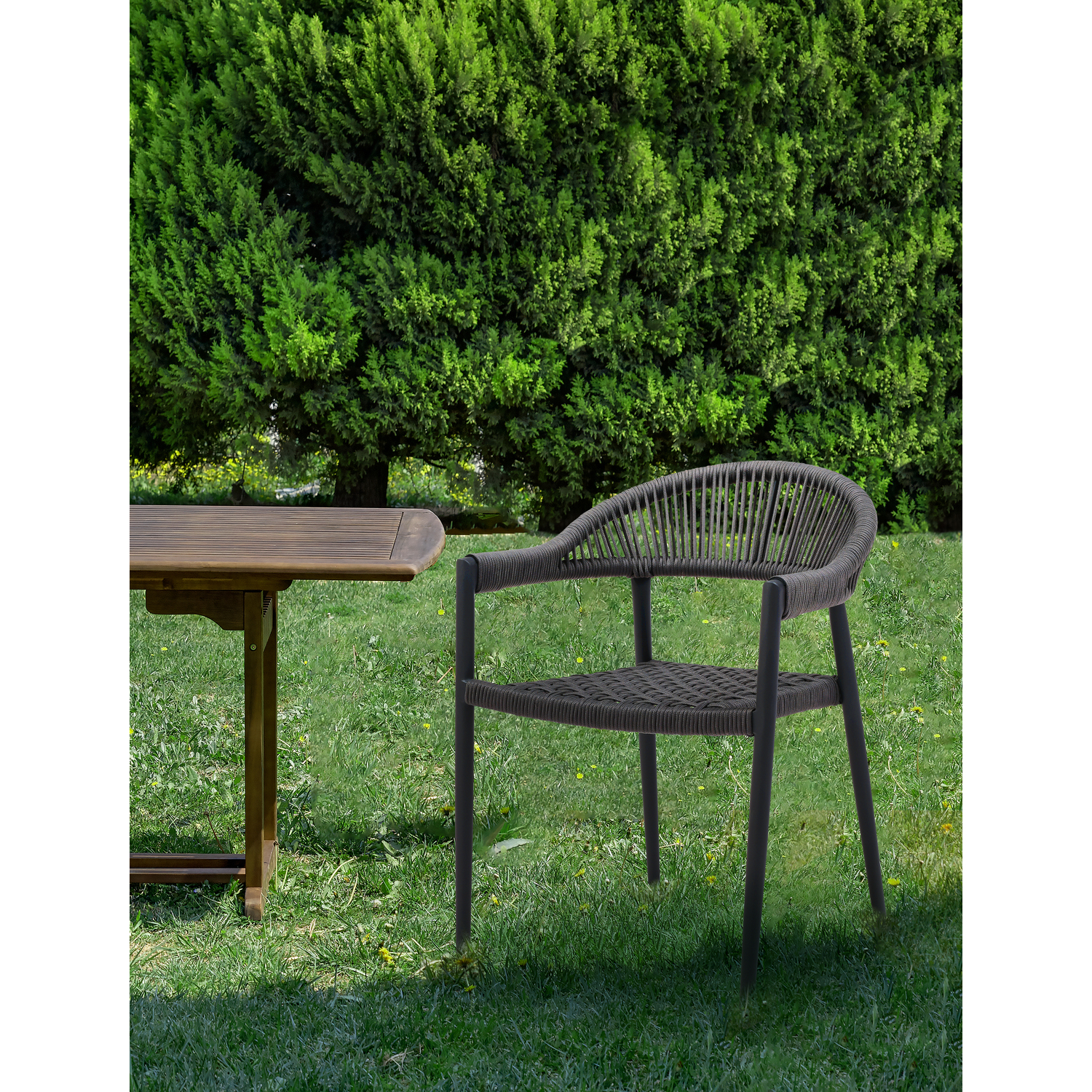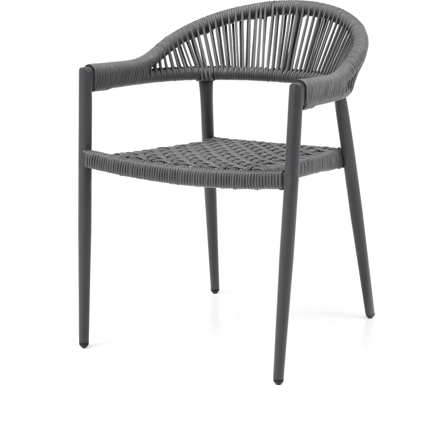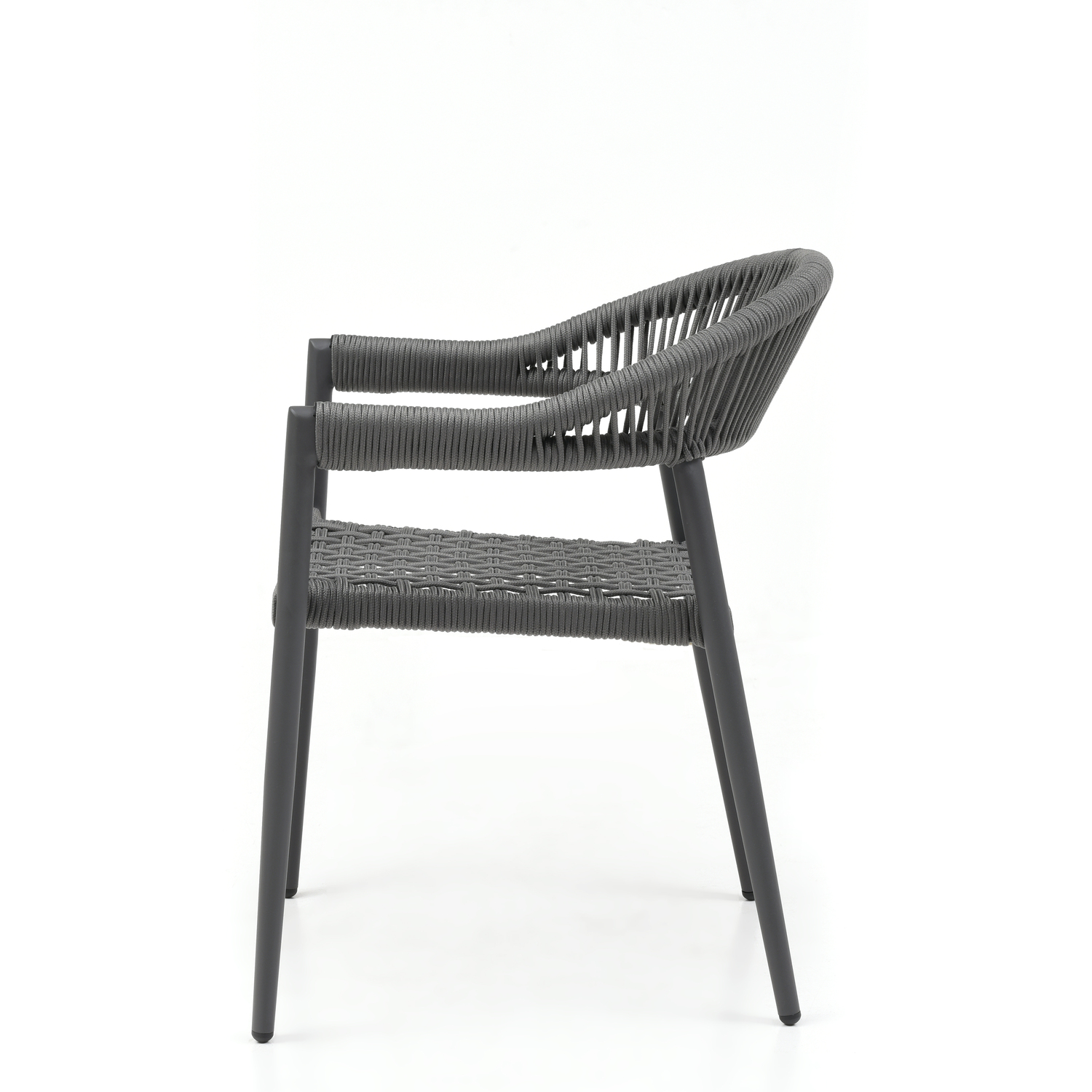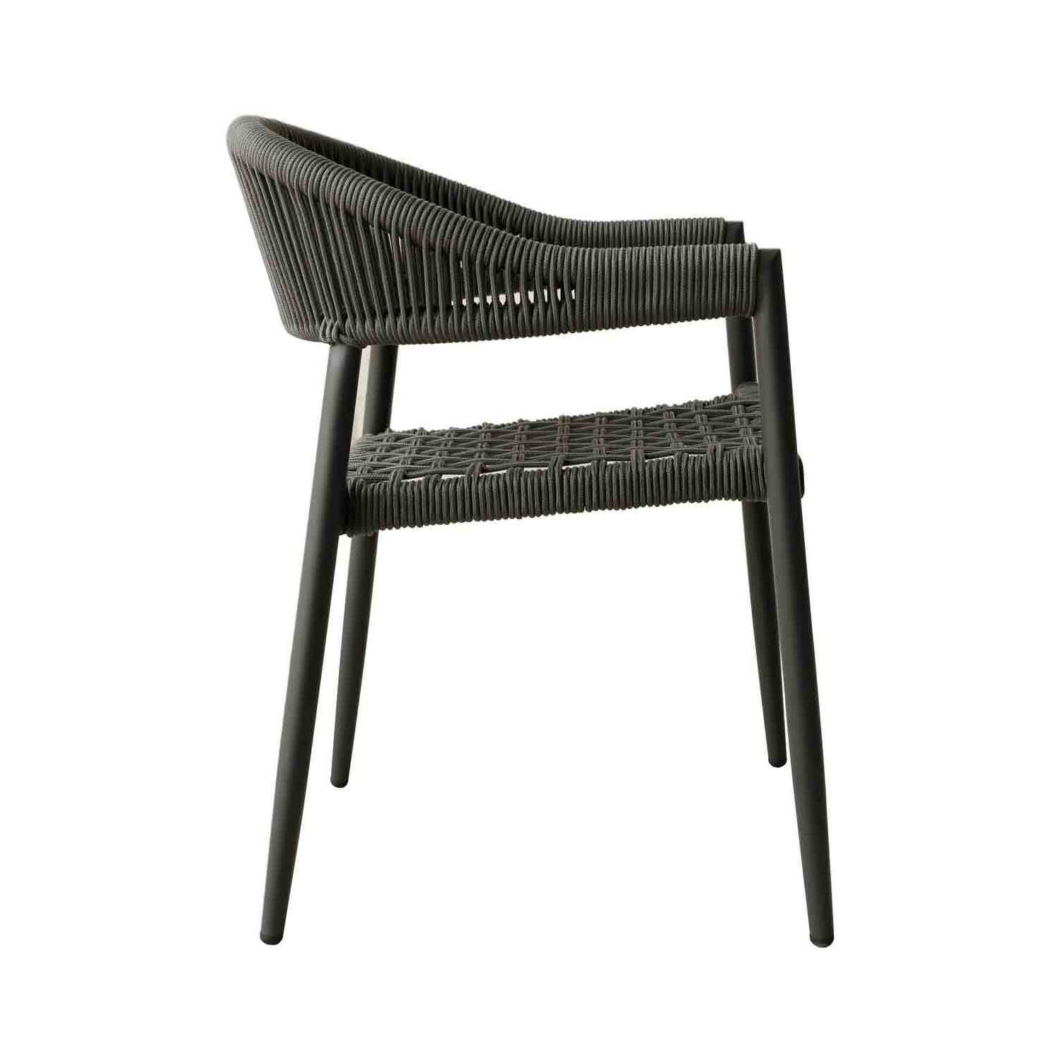 Leyla Indoor/Outdoor Dining Armchair, Aluminium in gray, 6mm oifen rope seat and back in gray, s...
