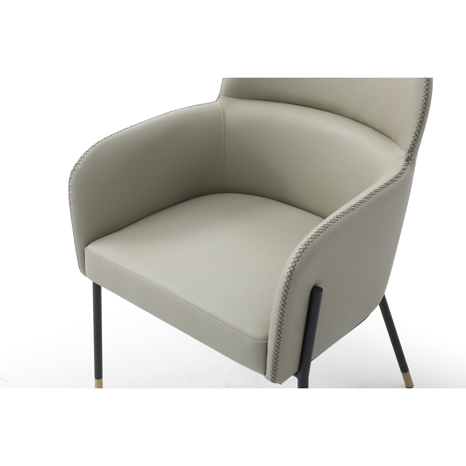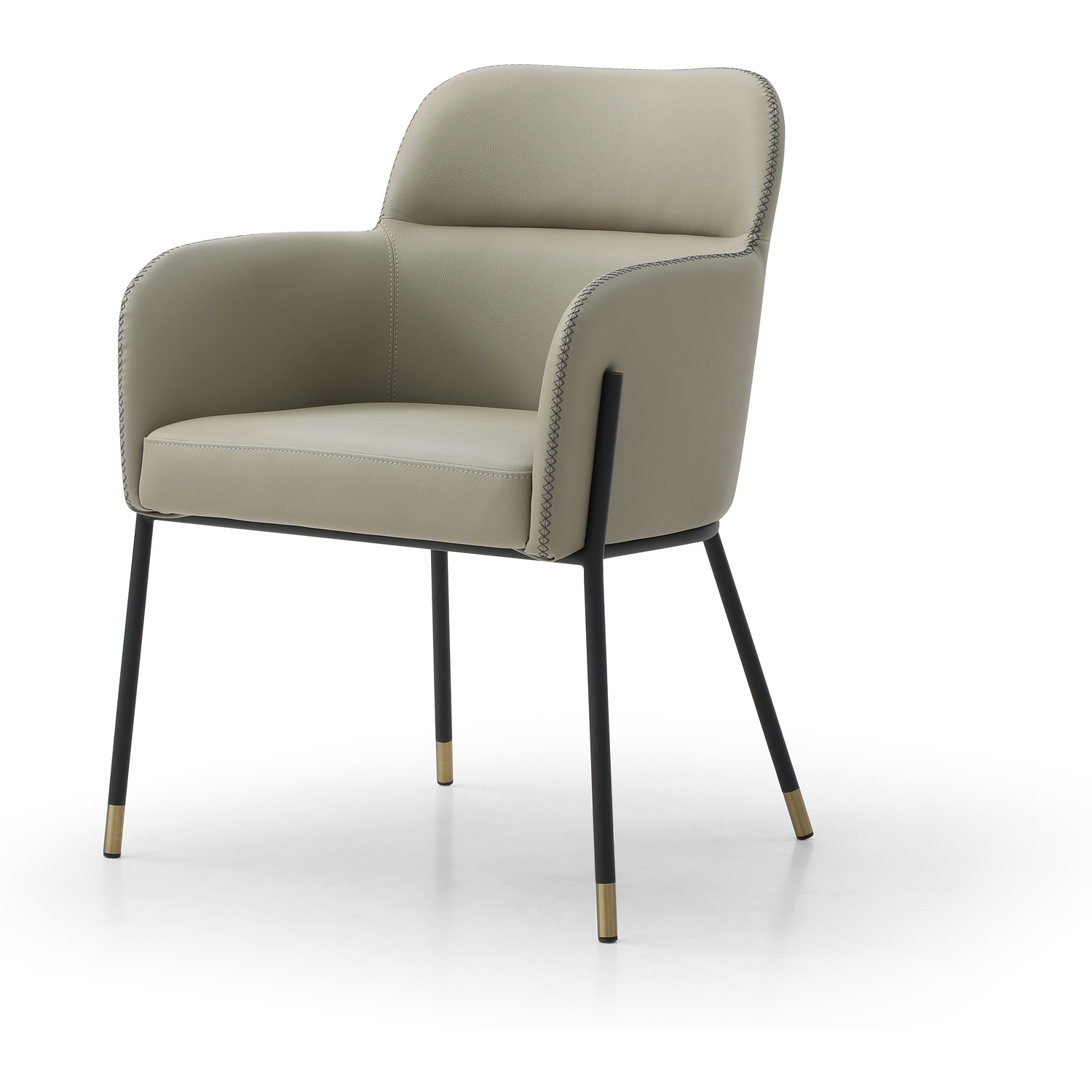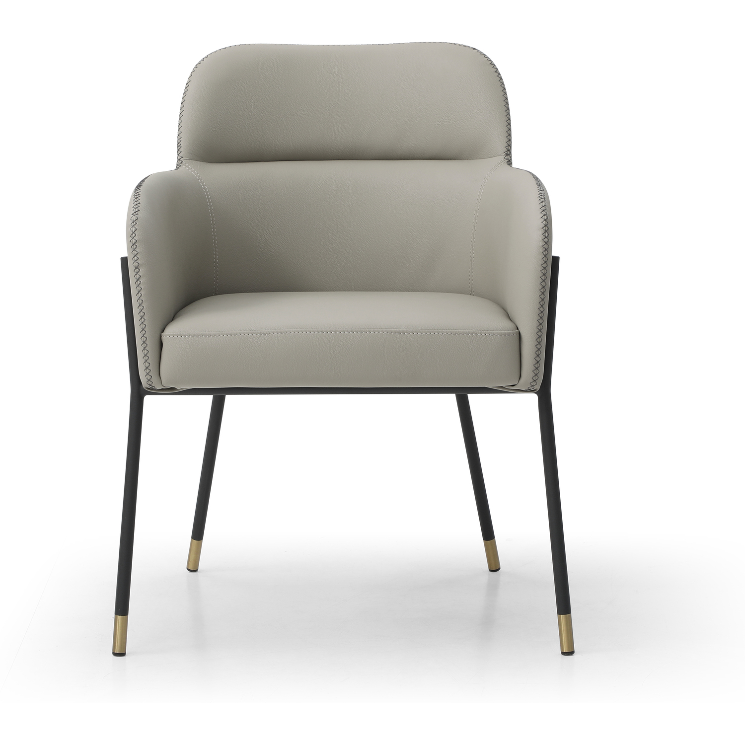 WhiteLine Heidi Dining Armchair, in Light Grey Faux Leather BIX-1046 , with Criss Cross Dark Grey Stitching BIX-8996 , Legs in Black Powder-Coated Steel with 2 inch Caps in Brushed Brass BIX-SS01., 0696576756870, DAC1842P-LGRY