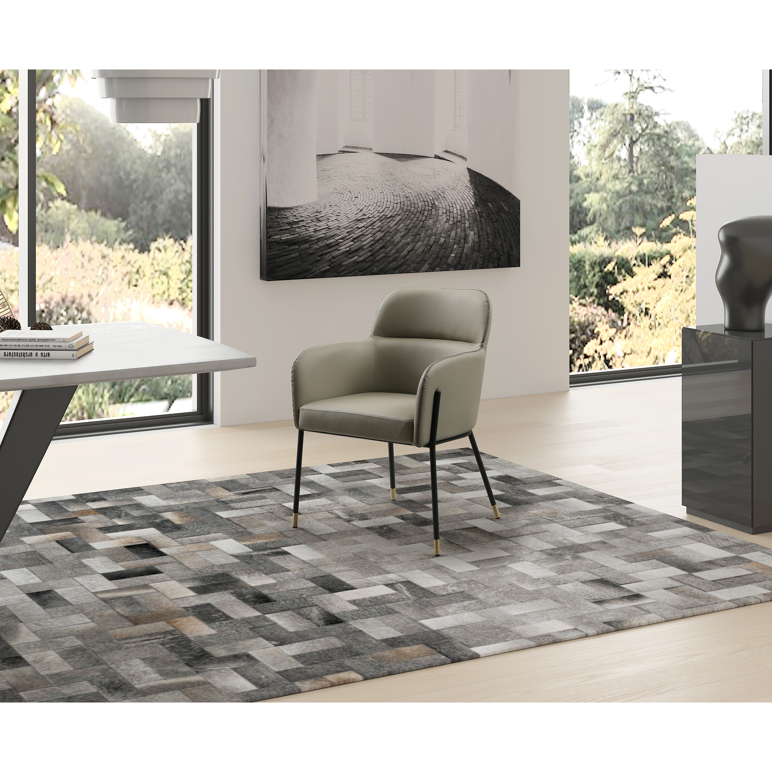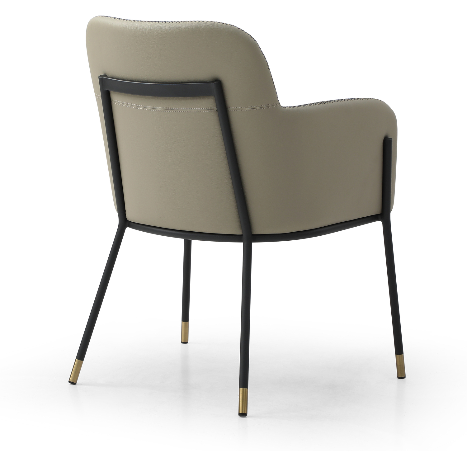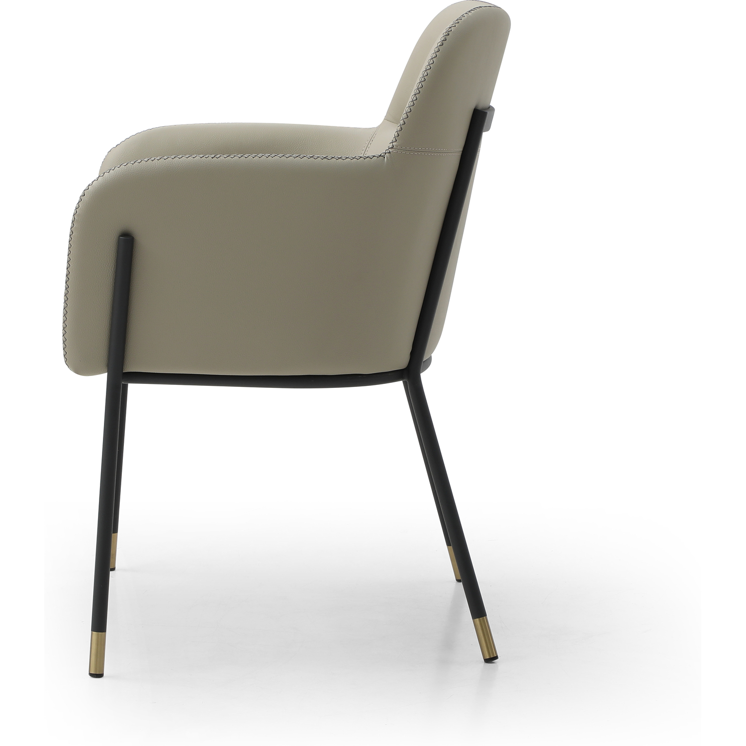 WhiteLine Heidi Dining Armchair, in Light Grey Faux Leather BIX-1046 , with Criss Cross Dark Grey Stitching BIX-8996 , Legs in Black Powder-Coated Steel with 2 inch Caps in Brushed Brass BIX-SS01., 0696576756870, DAC1842P-LGRY