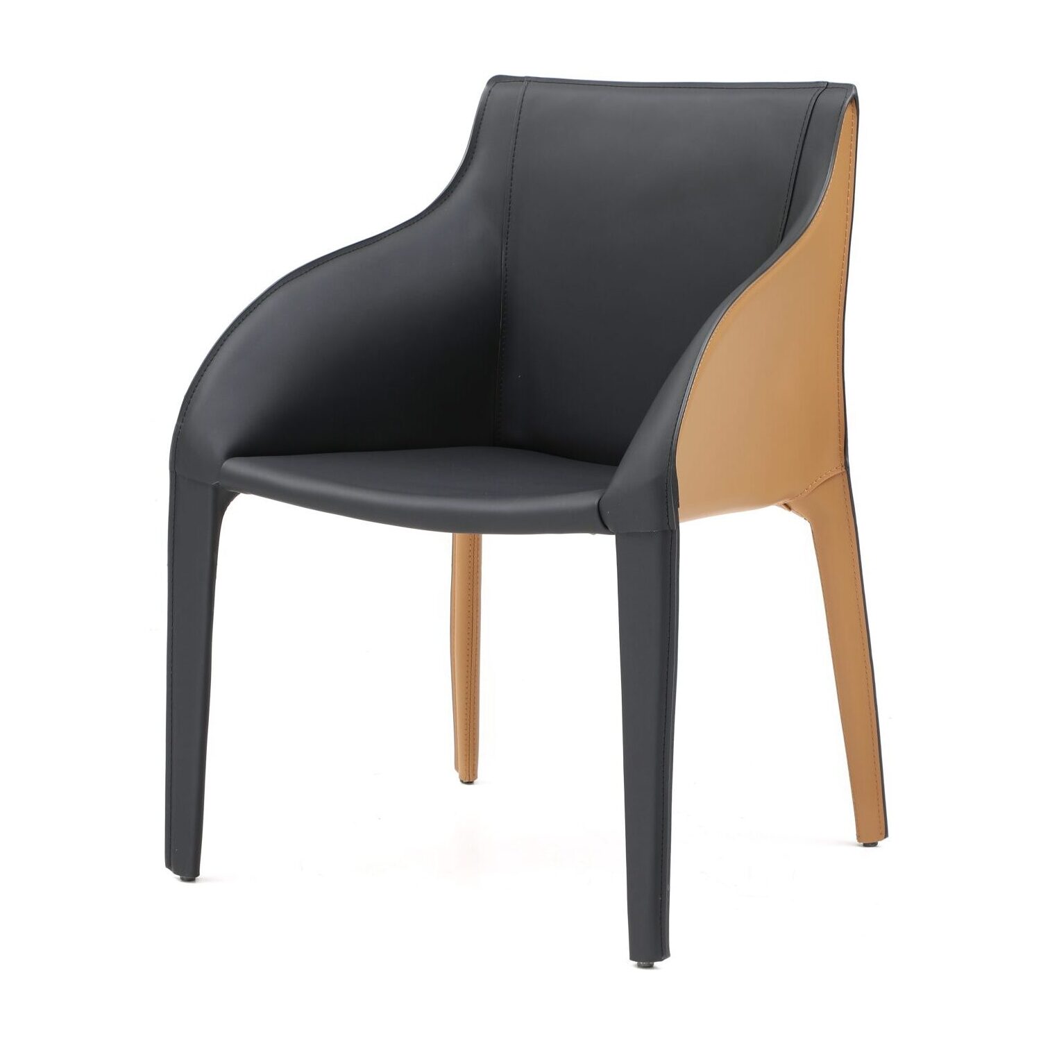 WhiteLine Emory Dining Armchair, Fully Upholstered, Front, Black Faux Leather FER-MA1-28, Back, Brown Faux Leather FER-MA1-2., 0696576756665, DAC1881P-BLK/BRN