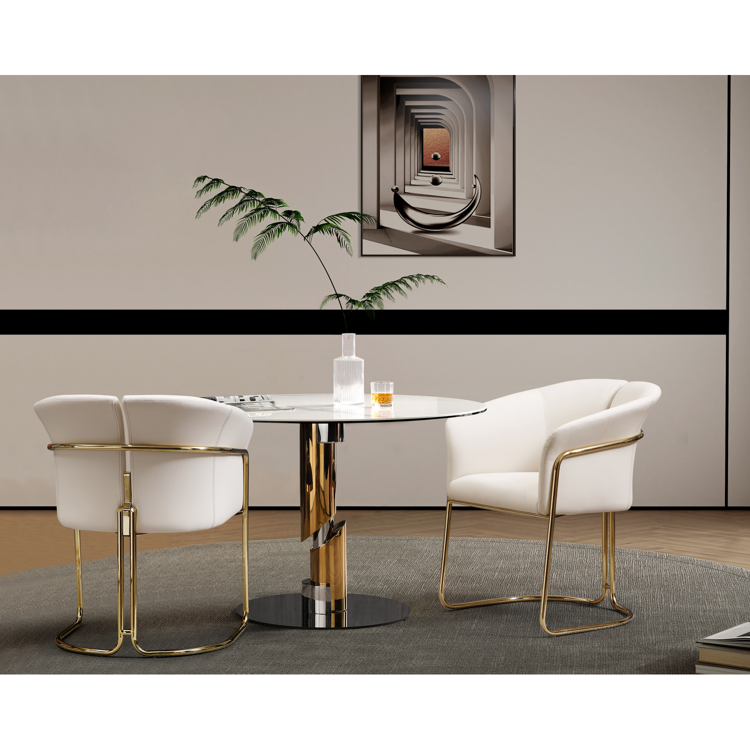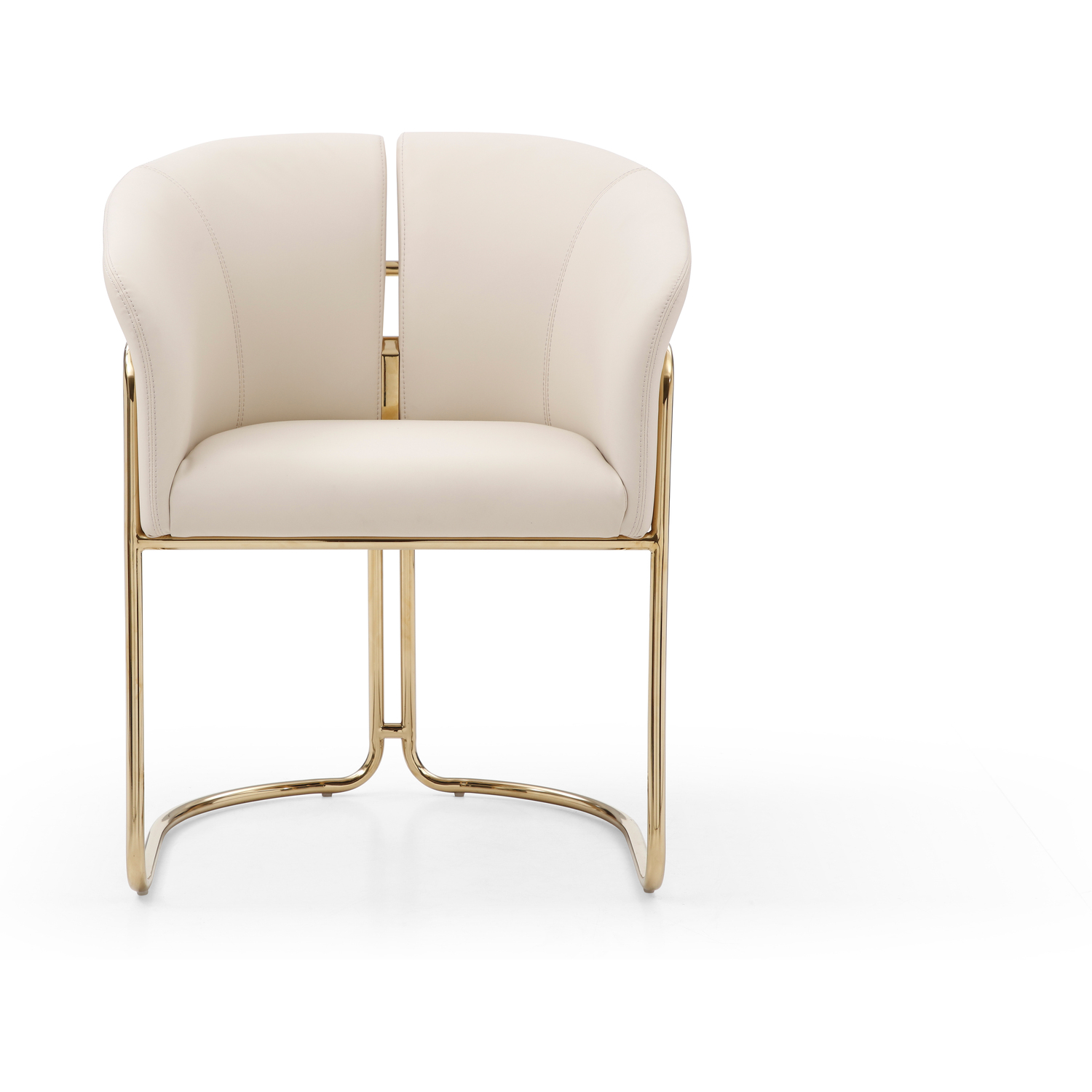 WhiteLine Jolie Dining Armchair, Beige Faux Leather BIX-2106, Frame and Base in Gold Polished Brass BIX-SS02., 0696576757037, DAC1923-BEI