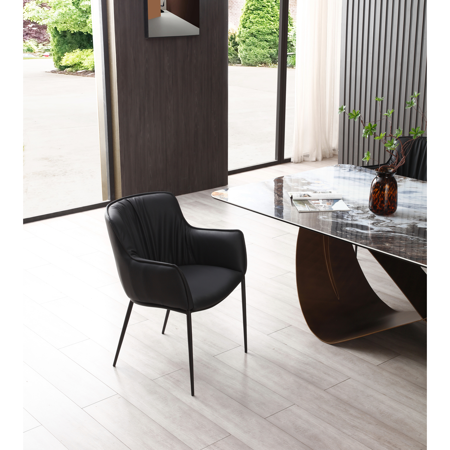 WhiteLine Tiffany Dining Armchair, Black Faux Leather FER-8175S, Legs in Black Powder-Coated Steel., 0696576756658, DAC1928P-BLK