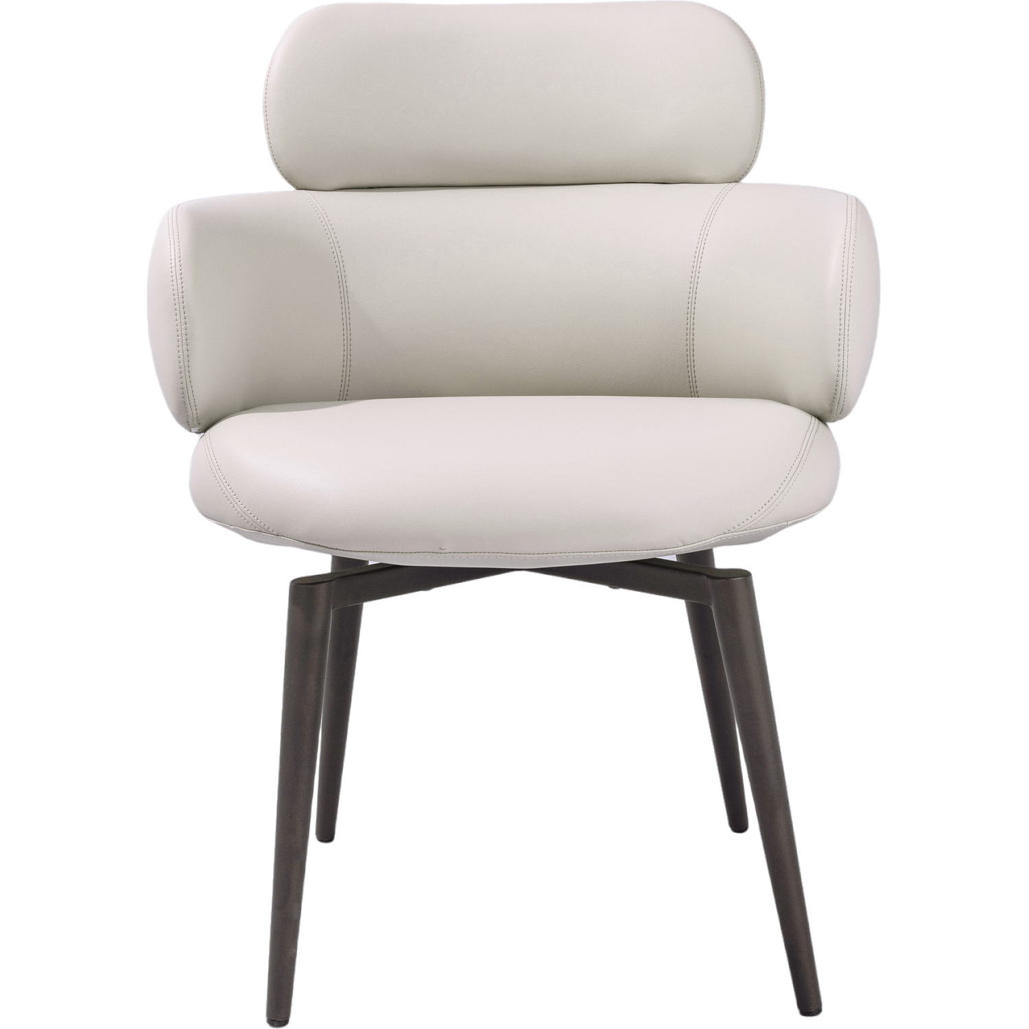 WhiteLine Como Swivel Dining Armchair. Upholstered in Light Gray Faux Leather Easy Clean BIX-2275 and Double Stitch, Dark Gray Metal Powder Coated Base., 0696576761485, DAC2069P-LGRY