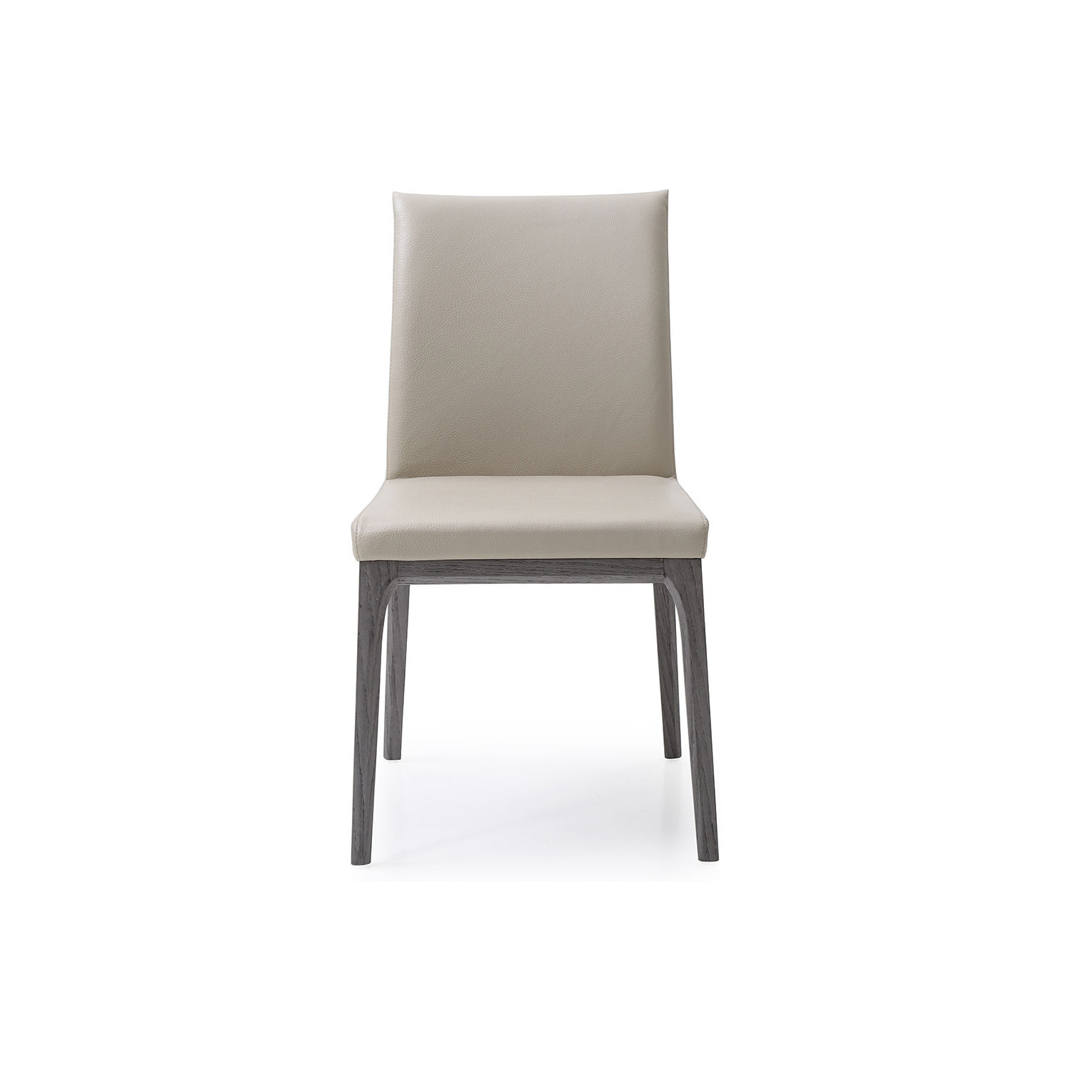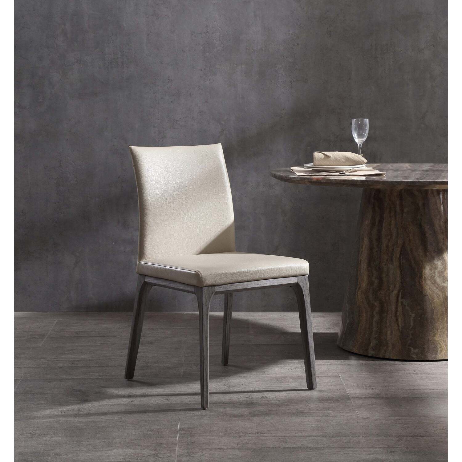 WhiteLine Stella Dining Chair, White Faux Leather BIX-410795 ,Solid Oak Grey Veneer Legs. Set of 2., 0696576746932, DC1454-GRY/WHT