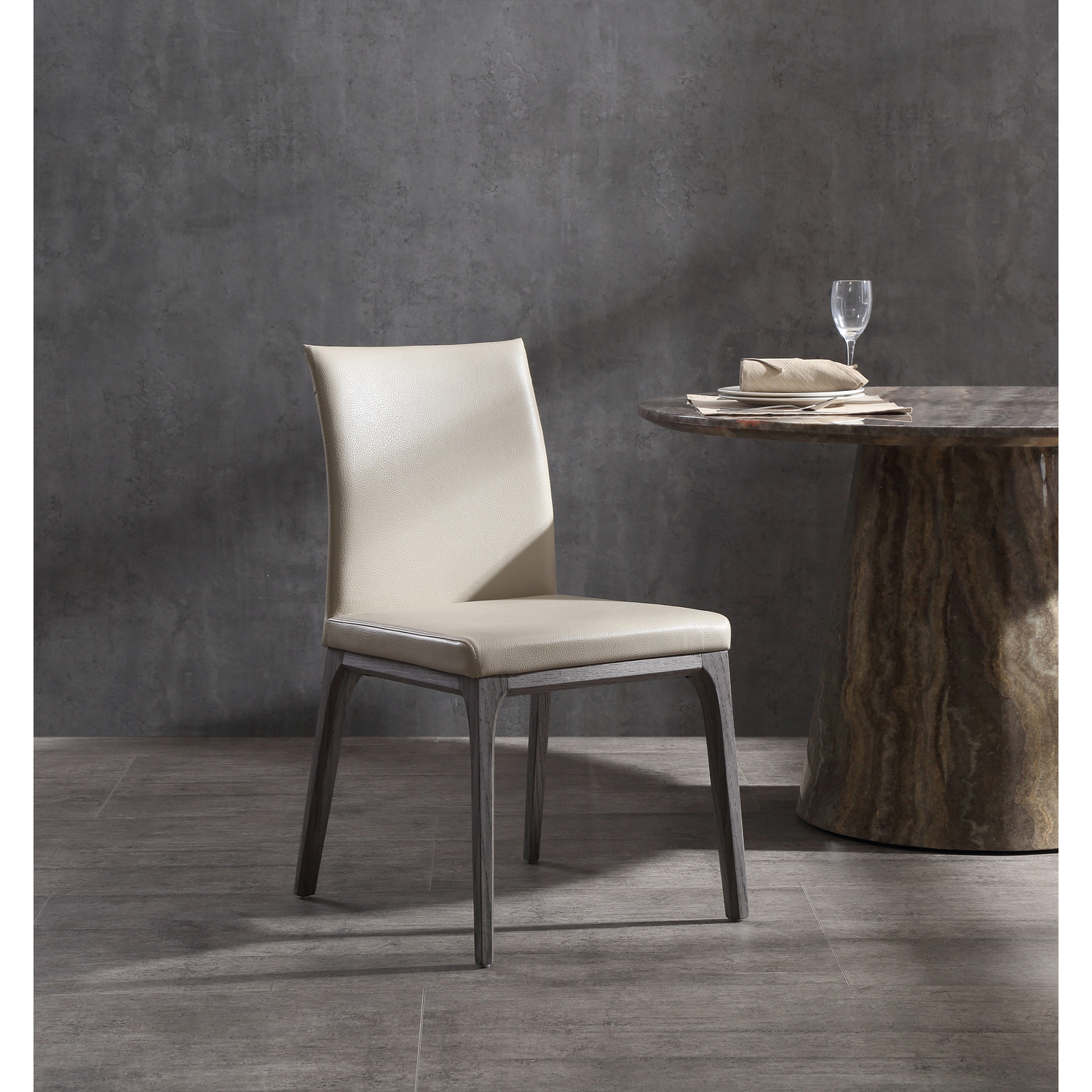 Stella Dining Chair, Black faux leather, solid wood with walnut veneer base frame. set of 2