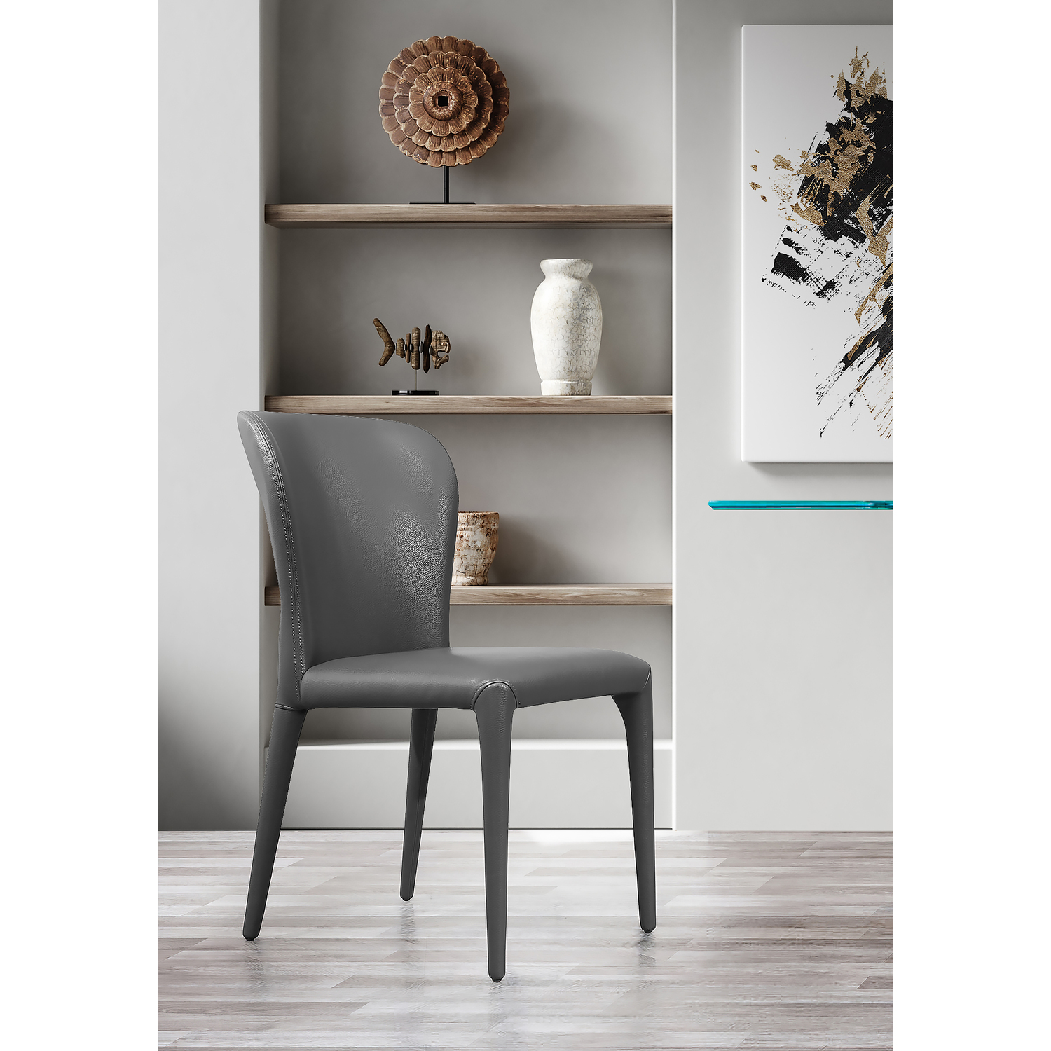 Hazel Dining Chair, Gray faux leather, Seat, Back and legs covered. set of 2