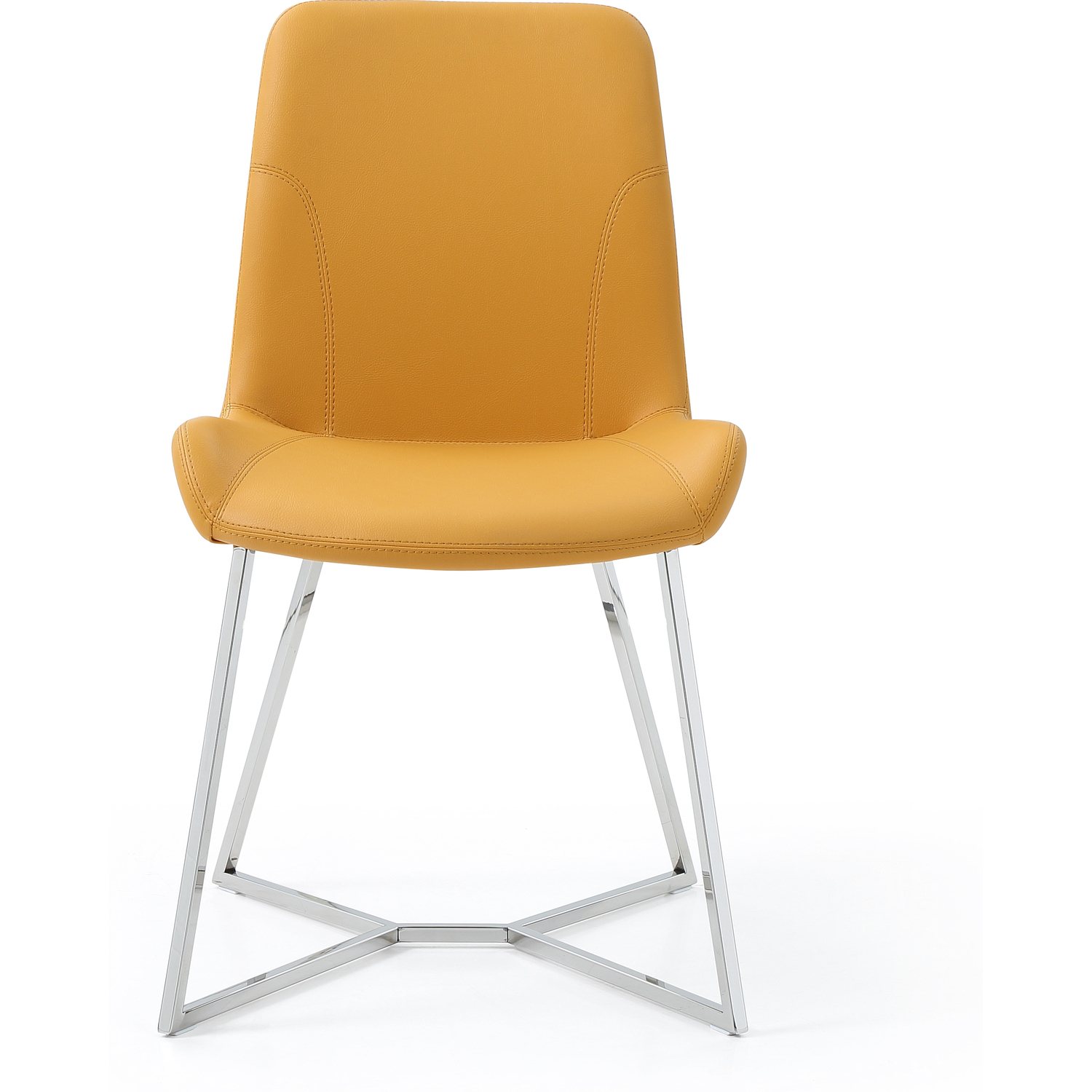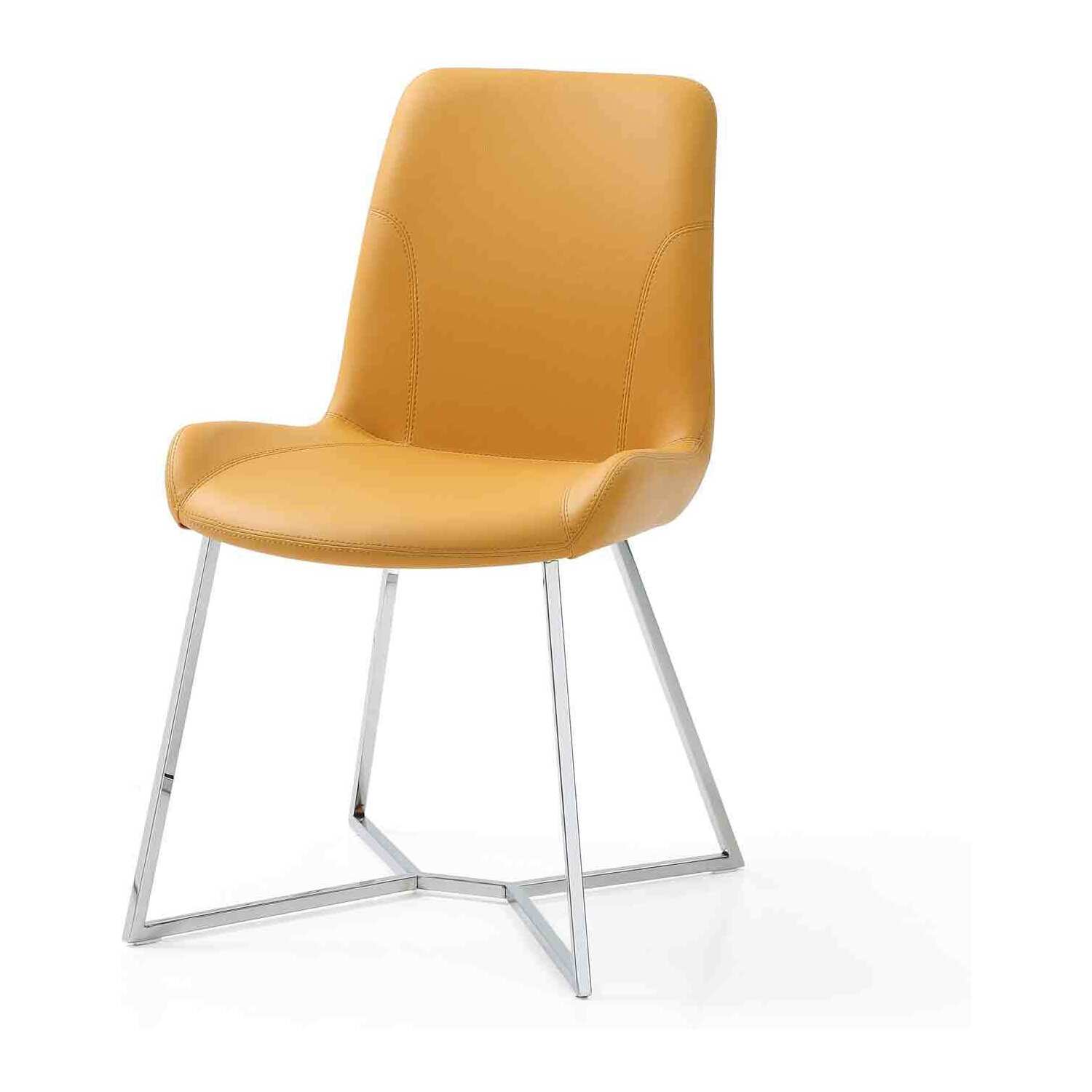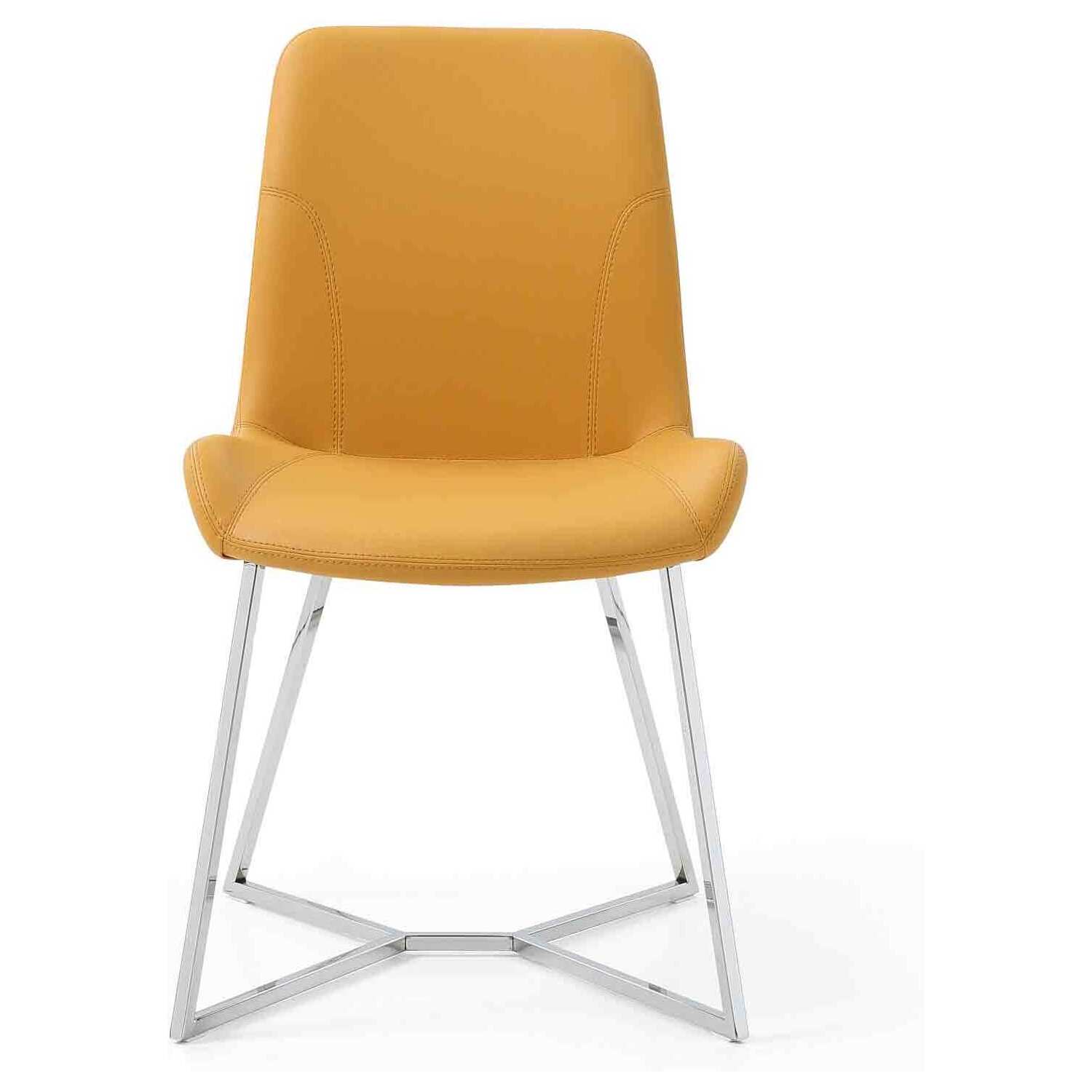 Aileen Dining Chair Yellow Faux Leather with Polished stainless steel base