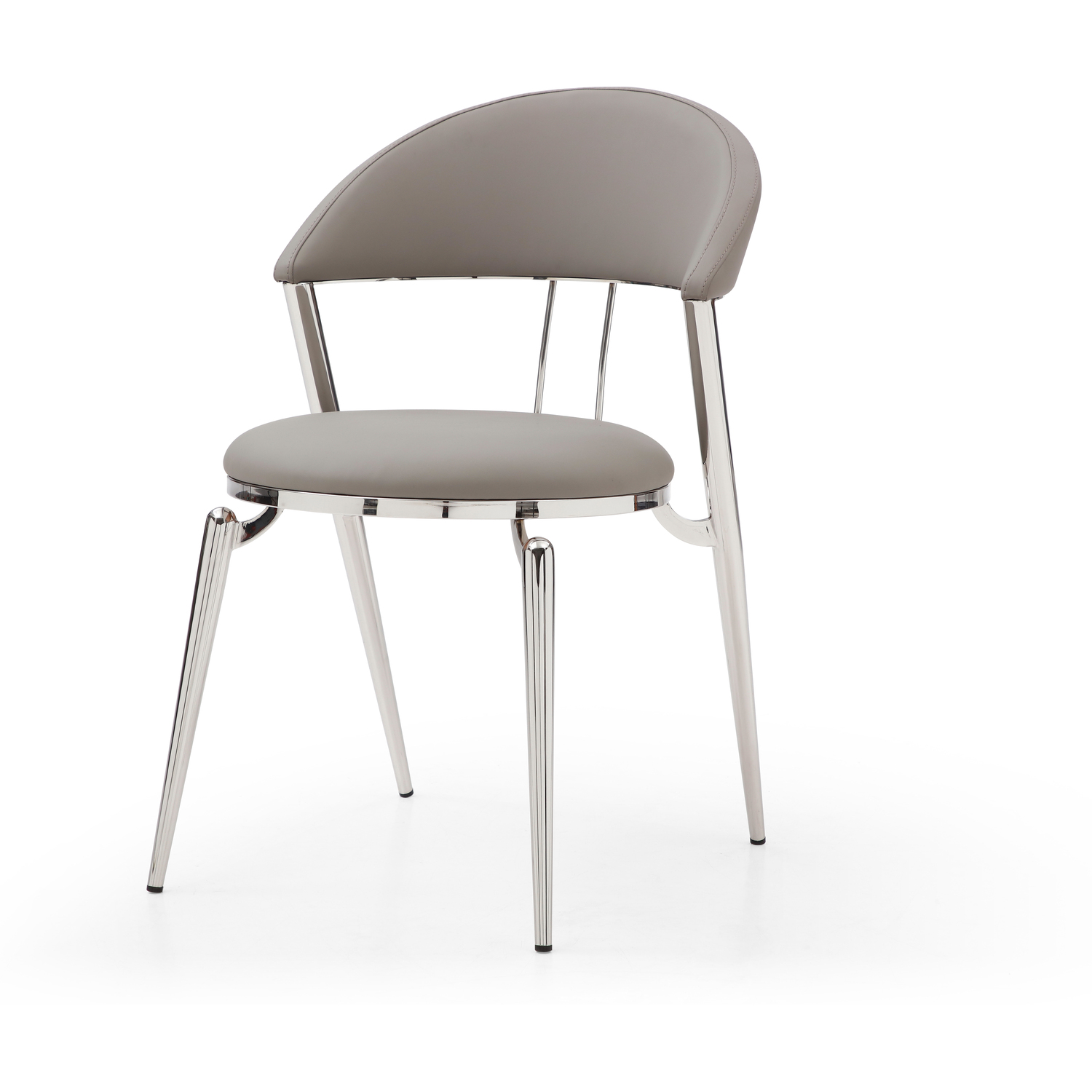 WhiteLine Geneva Dining Chair, in Grey Faux Leather BIX-2109, Frame and Legs in Shiny Silver Stainless Steel BIX-201 Grade. Set of 2., 0696576755354, DC1640-GRY