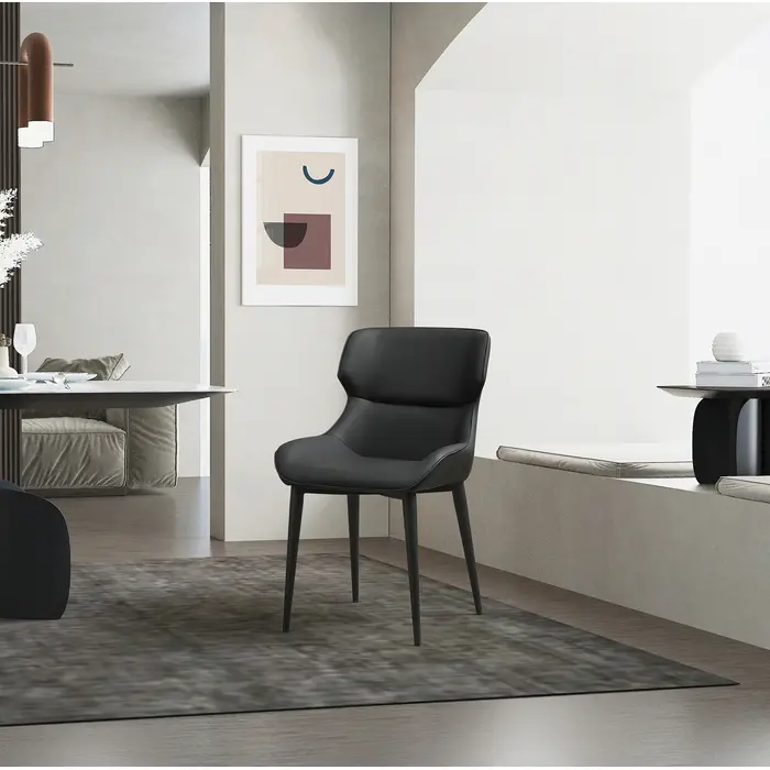 Morocco Dining Chair, Light Gray Faux Leather in the front, Warm Dark Gray on the back, Sanded B...