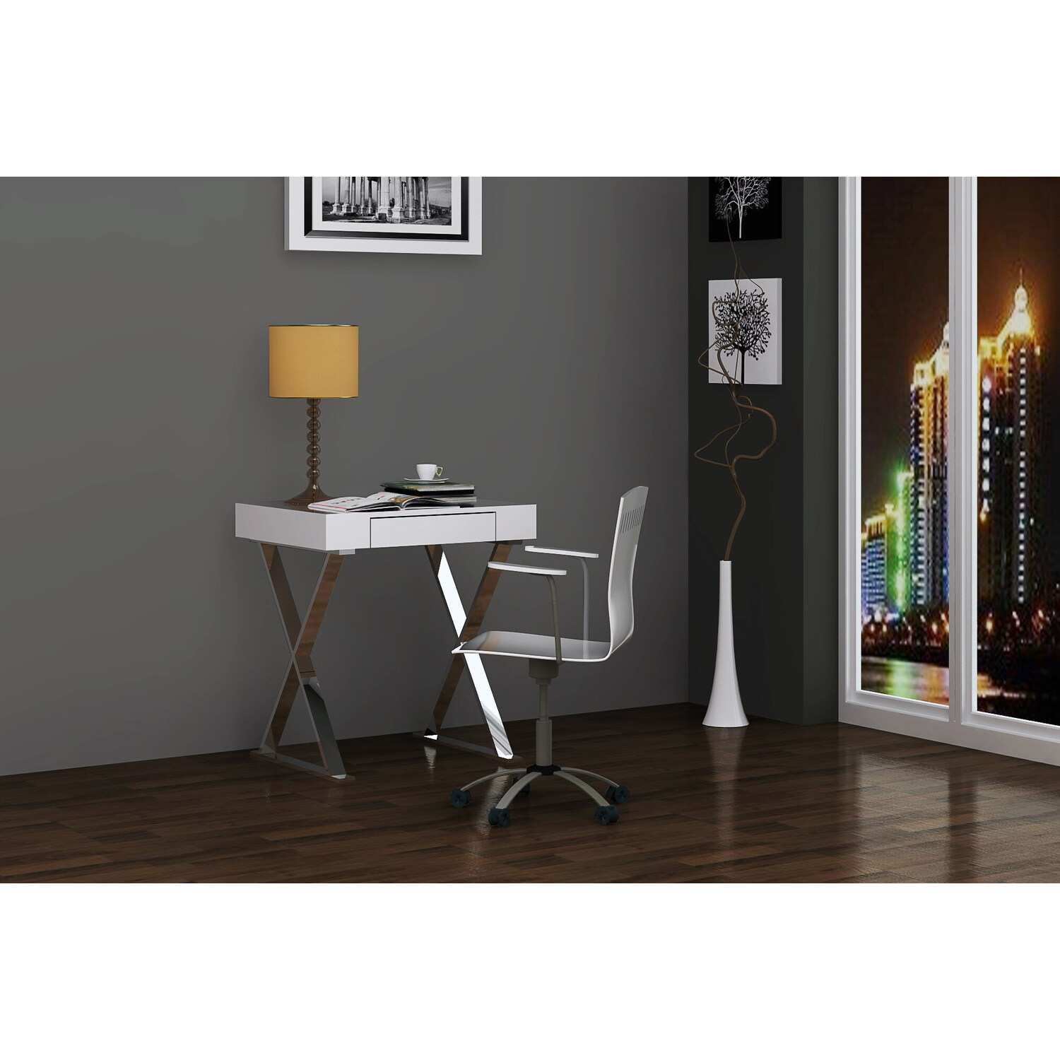 Whiteline Imports DK1205S-WHT Elm Writing Desk With Drawer
